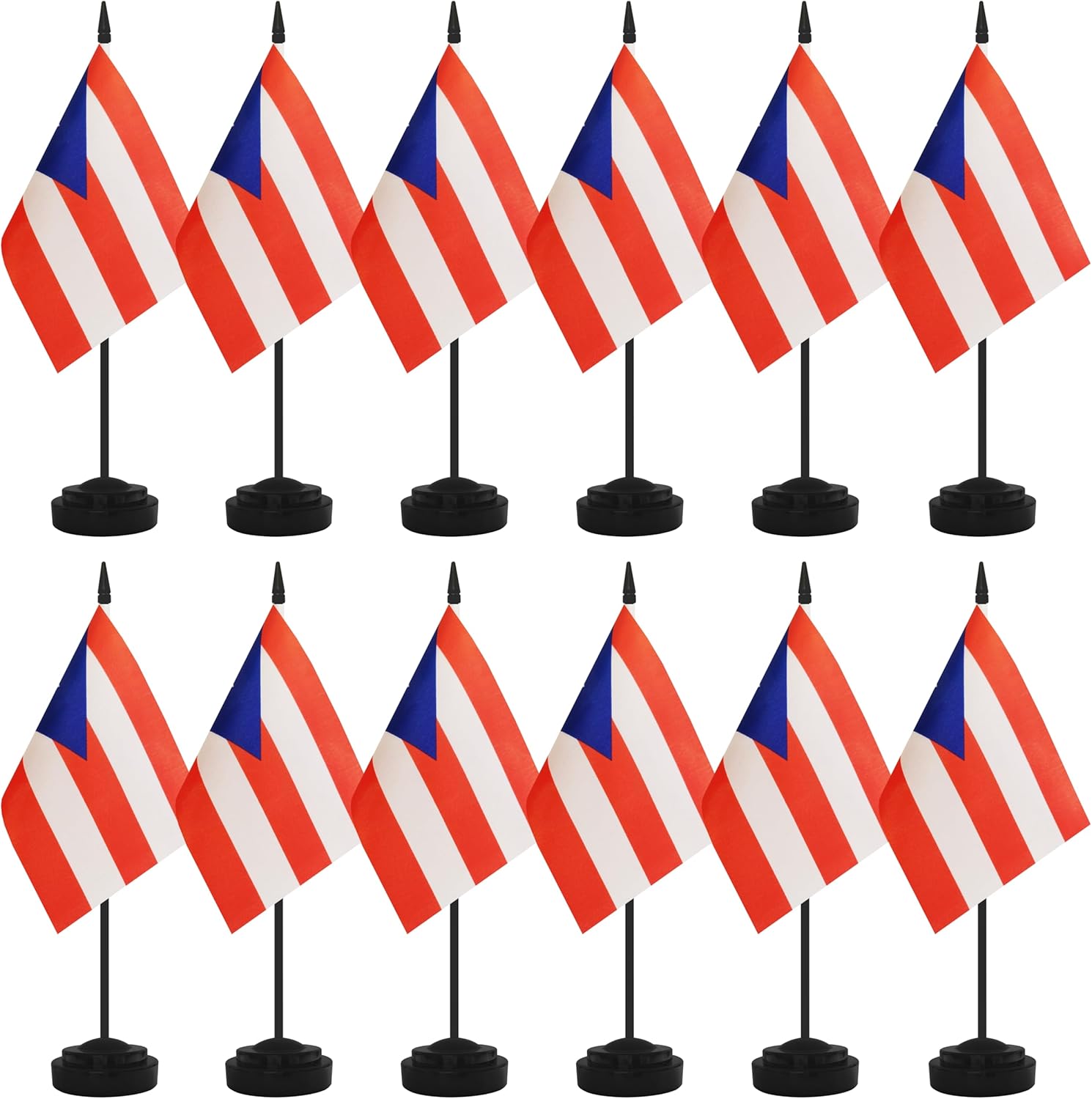 12 Pack Puerto Rico Desk Flags, Puerto Rican Desktop Flag, Small Miniature Office Flags with 12" Black Pole and Black Base, Offices, Classroom, Home, Festival Decoration (Puerto Rico)