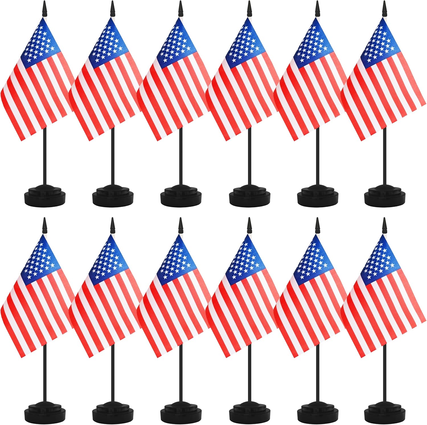 12 Pack USA Desk Flags, American Desktop Flag, Small Miniature Office Flags with 12" Black Pole and Black Base, Offices, Classroom, Home, Festival Decoration (USA)