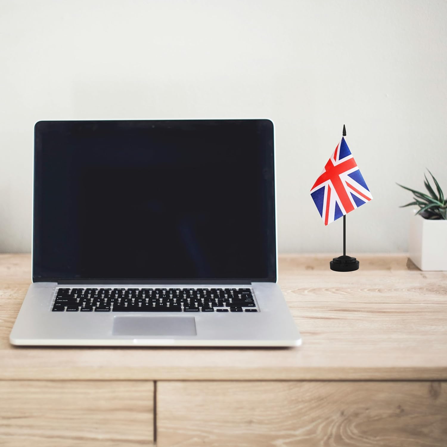 12 Pack UK Desk Flags, Britain Desktop Flag, Small Miniature Office Flags with 12" Black Pole and Black Base, Offices, Classroom, Home, Festival Decoration (UK)