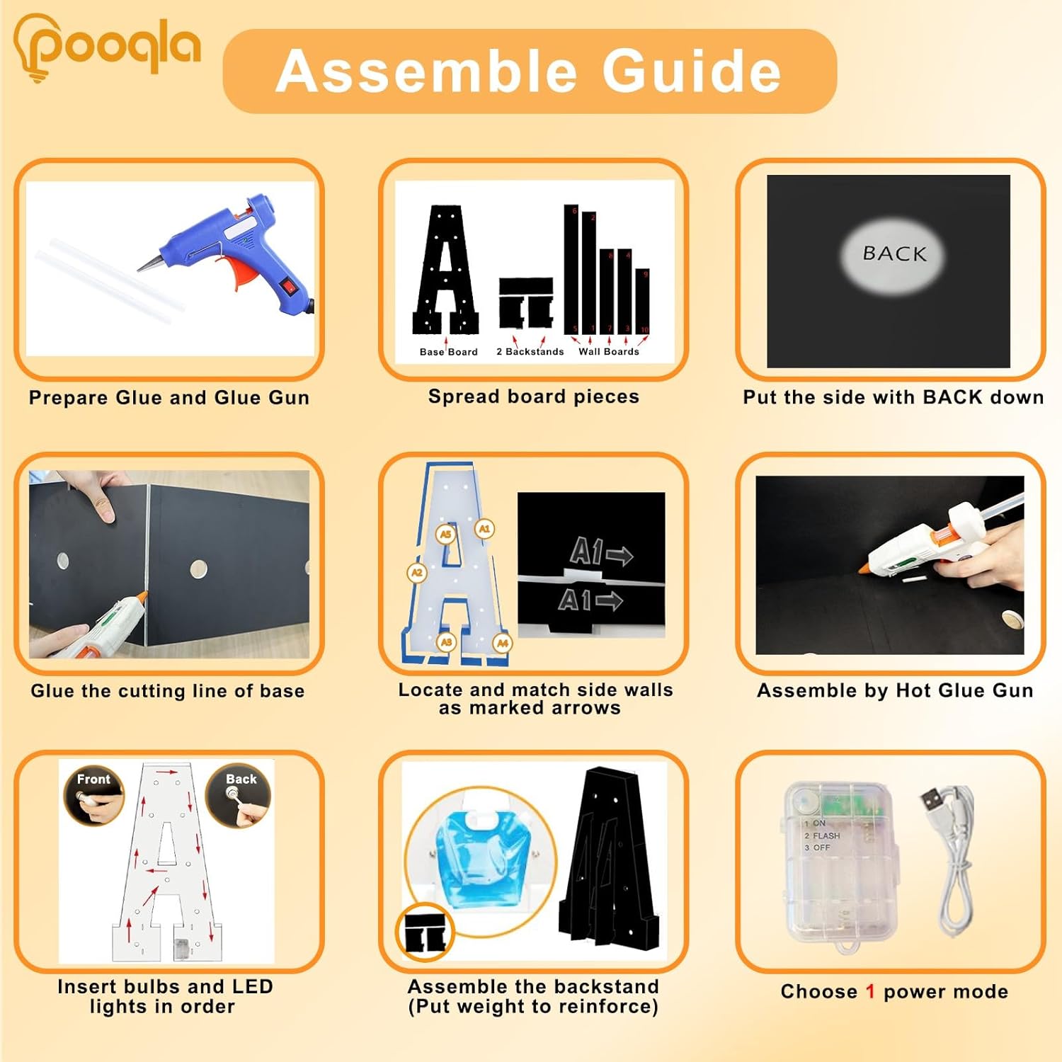 - Easy to Assemble: 1) Glue the base board, match the base and wall boards according to marked number and arrow. 2) Glue the base and wall boards together. 3) Screw the bulbs, connect LED lights and power on. Note: Glue gun, glue not included