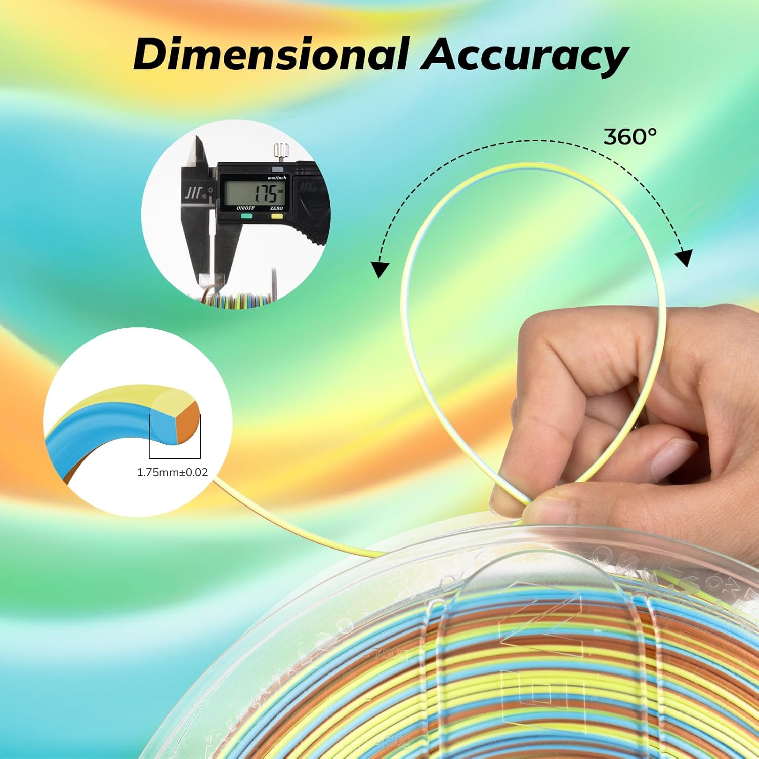 - Precision Printing: Achieve flawless prints with shiny silk rainbow PLA filament, engineered for ease of use and exceptional precision. With a product diameter of 1.75 mm and precision tolerance of +/- 0.02 mm, smooth and consistent results