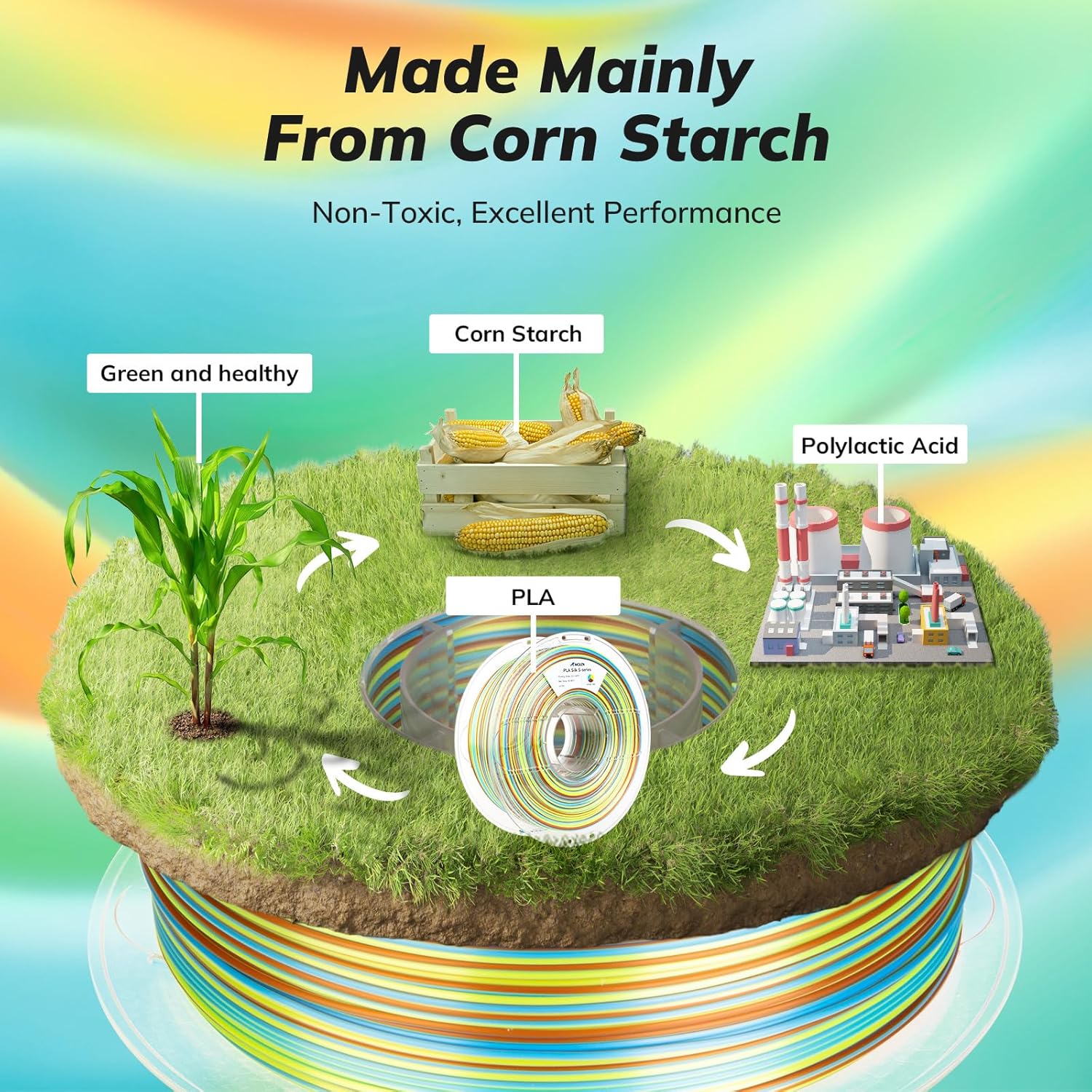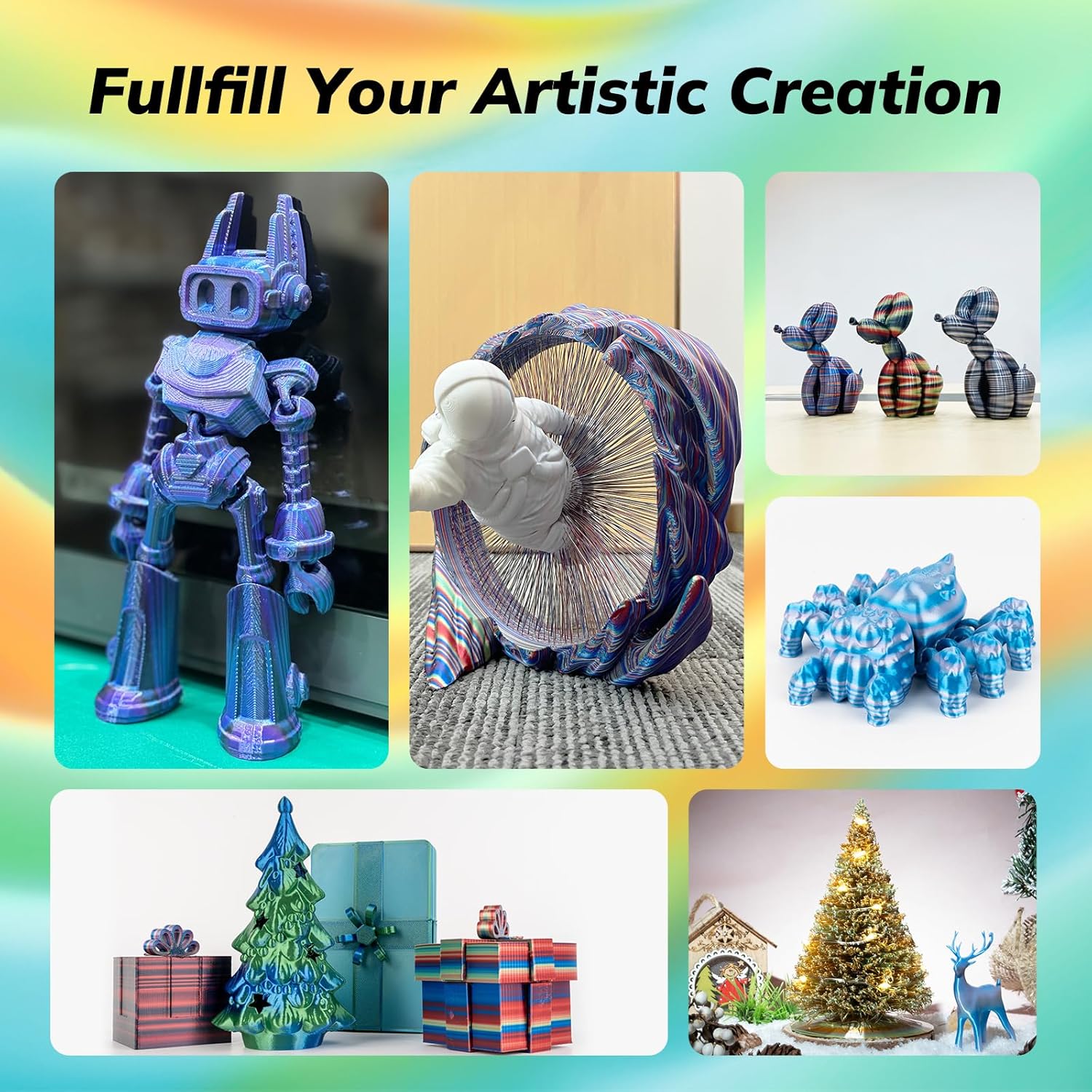 - Vibrant Colors and Multiple Choices: Amolen 3D printer filament offers a rich selection of colors, meeting all your creative needs. You can get amazing color transition while saving time and cost compared to traditional single-color filaments