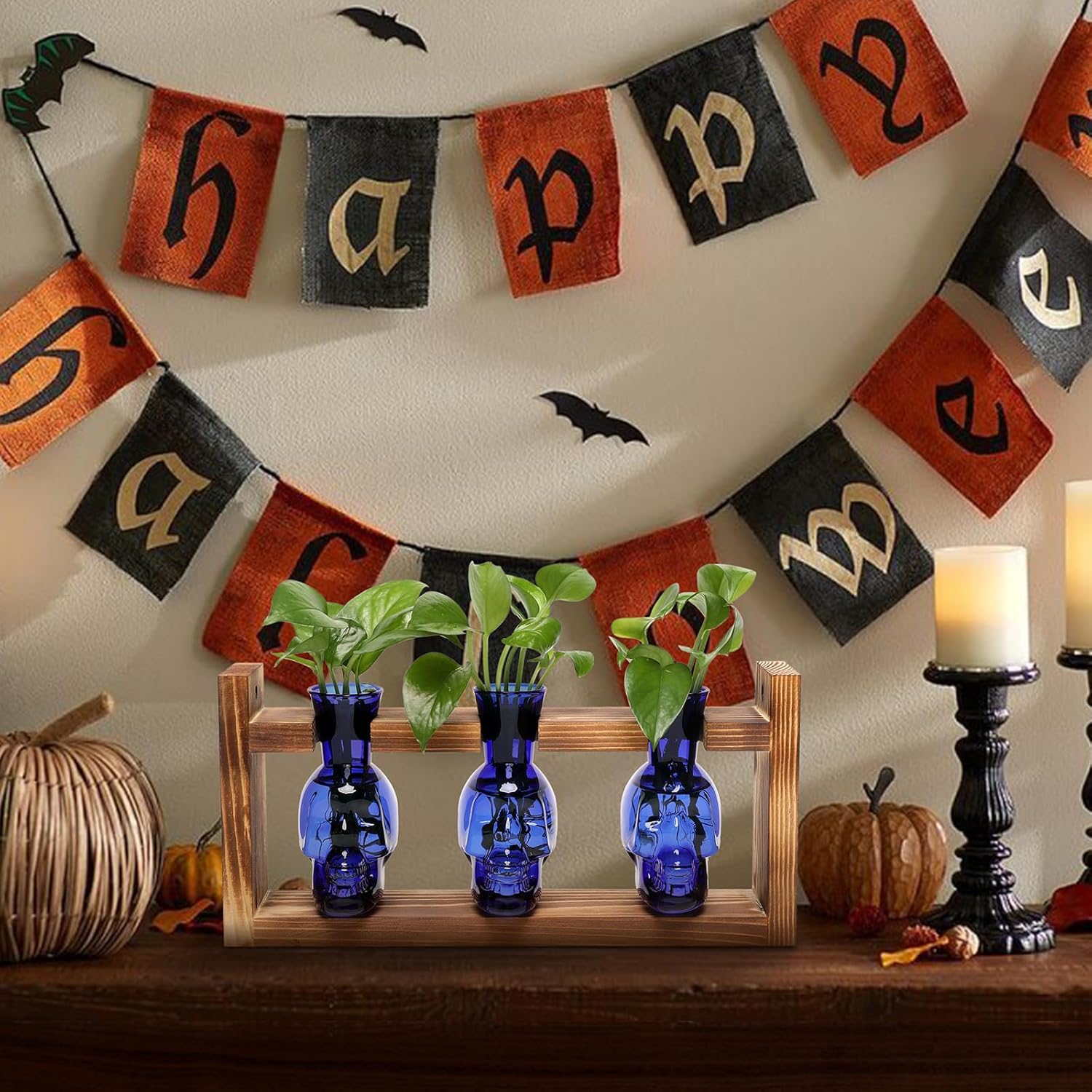 Plant Terrarium Propagation Stations Hydroponics Halloween Skull Planter Vase Skulls Decor with Wooden Stand Gift for Father