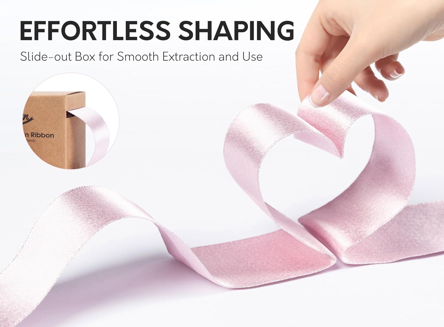 - SLIDE-OUT PACKAGING BOX: This satin ribbon comes in a clever pull-out paper box packaging, saving you time and making the usage process more seamless. The refined packaging box also makes an elegant gift for your friends and loved ones