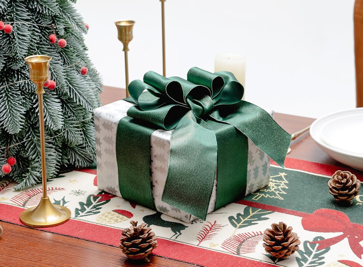 - VARIOUS USAGE: This pliable wired glitter satin ribbon is great for dressing up Christmas trees, decorating gifts and home accents during special events. It can be used to create wreaths, embellish bouquets and complement a variety of other DIY projects