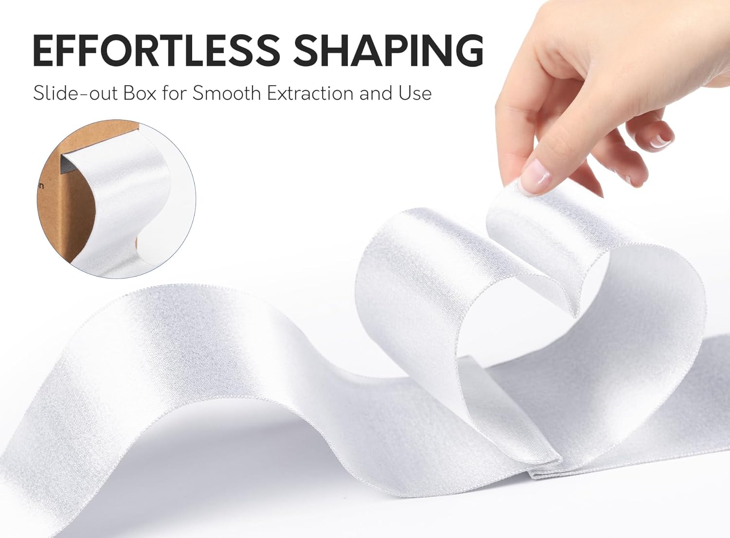 - SLIDE-OUT PACKAGING BOX: This satin ribbon comes in a clever pull-out paper box packaging, saving you time and making the usage process more seamless. The refined packaging box also makes an elegant gift for your friends and loved ones