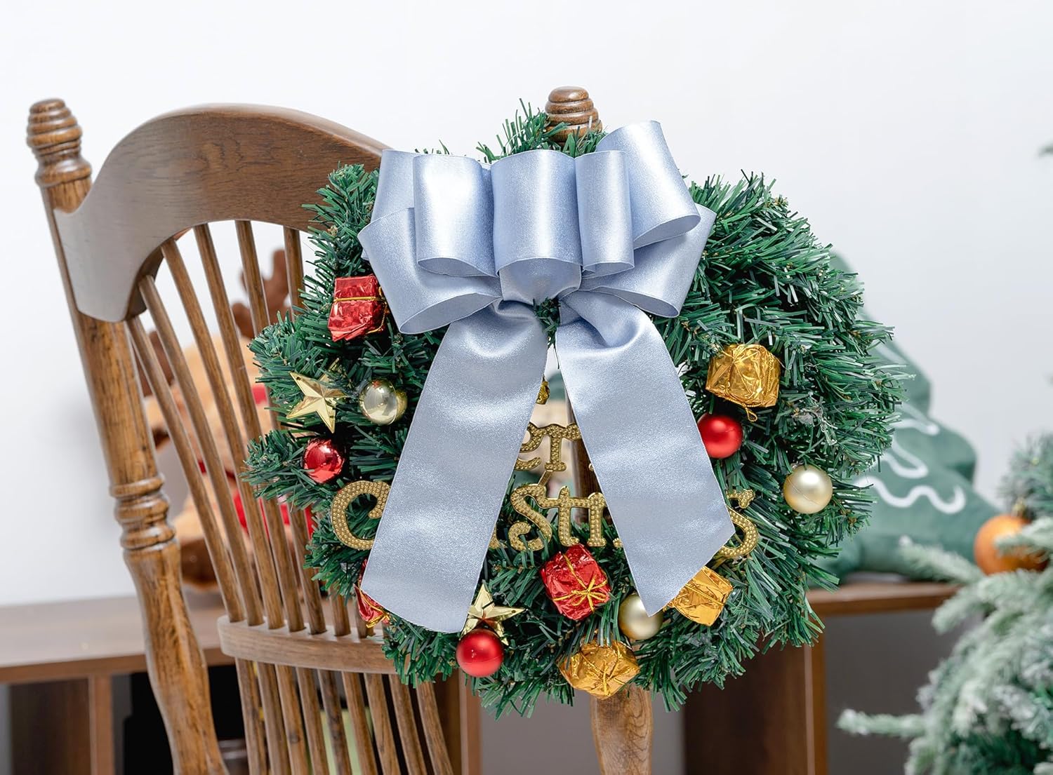 Light Blue Satin Wired Ribbon 2-1/2 Inch Double-Faced Sliver Glitter Christmas Ribbons for Wreath, Tree Decoration, Gift Wrapping, Home Decor 10 Yards