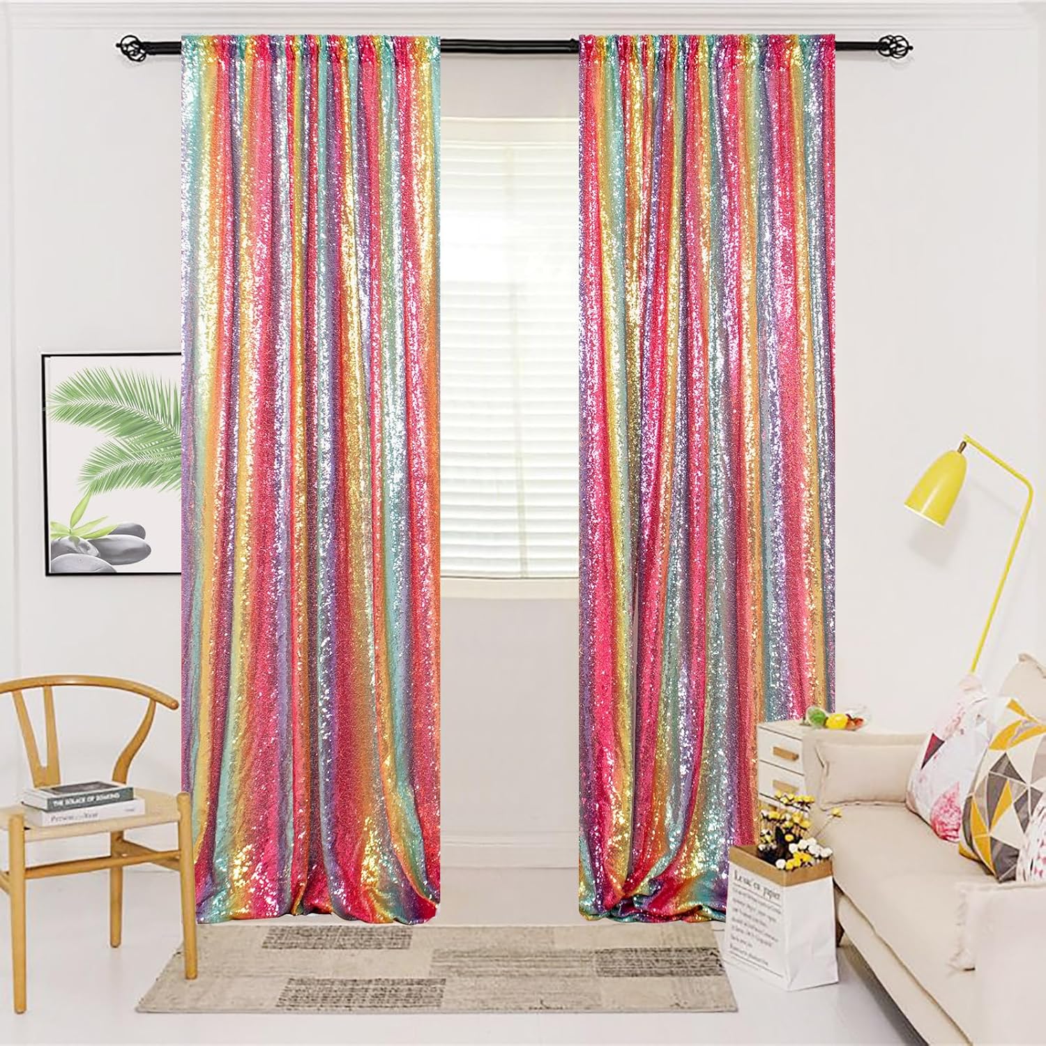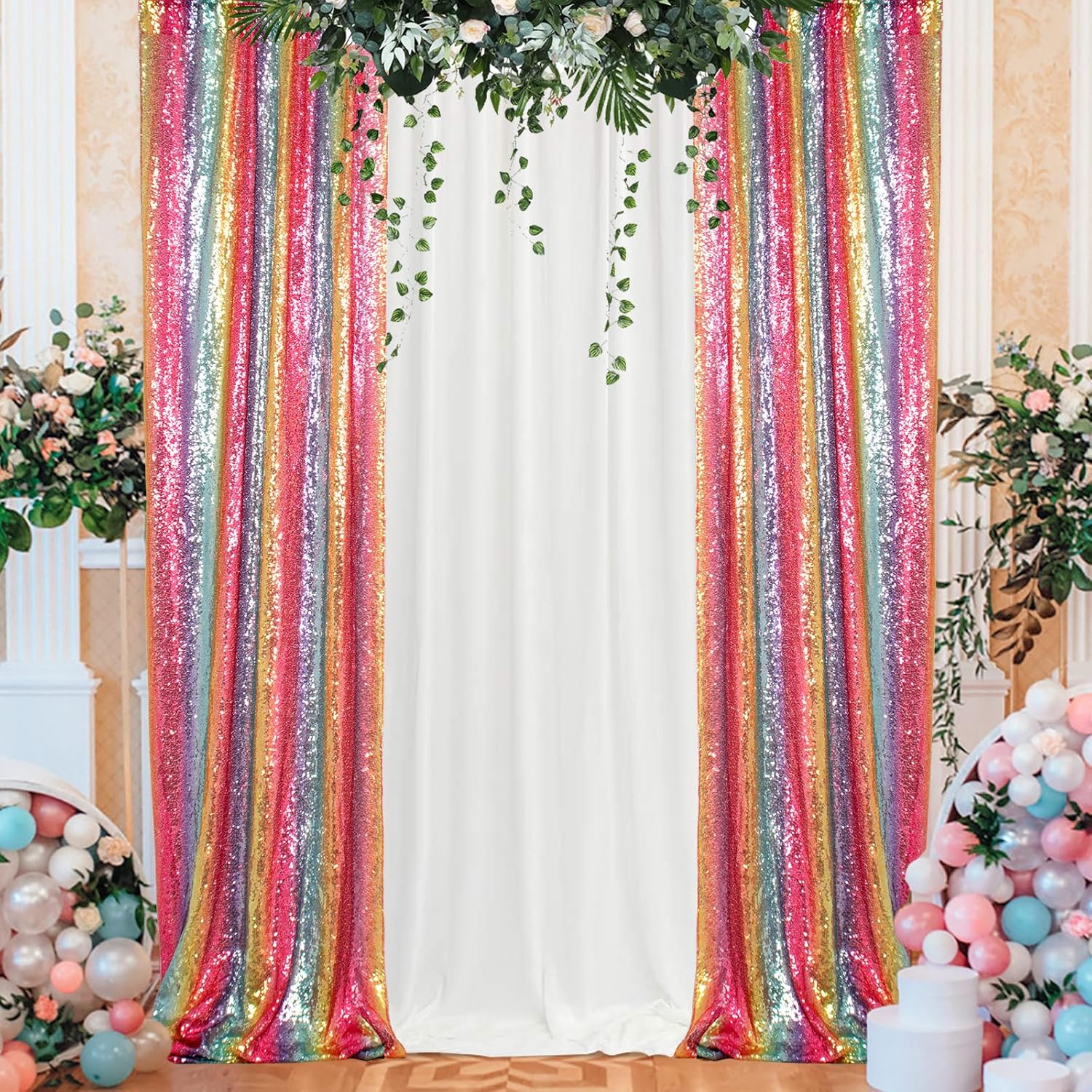 ShinyBeauty 4x10ft Rainbow Sequin Photo Backdrop - Glitter Wall Decor for Wedding, Birthday, Baby Shower - Reusable & Lightweight
