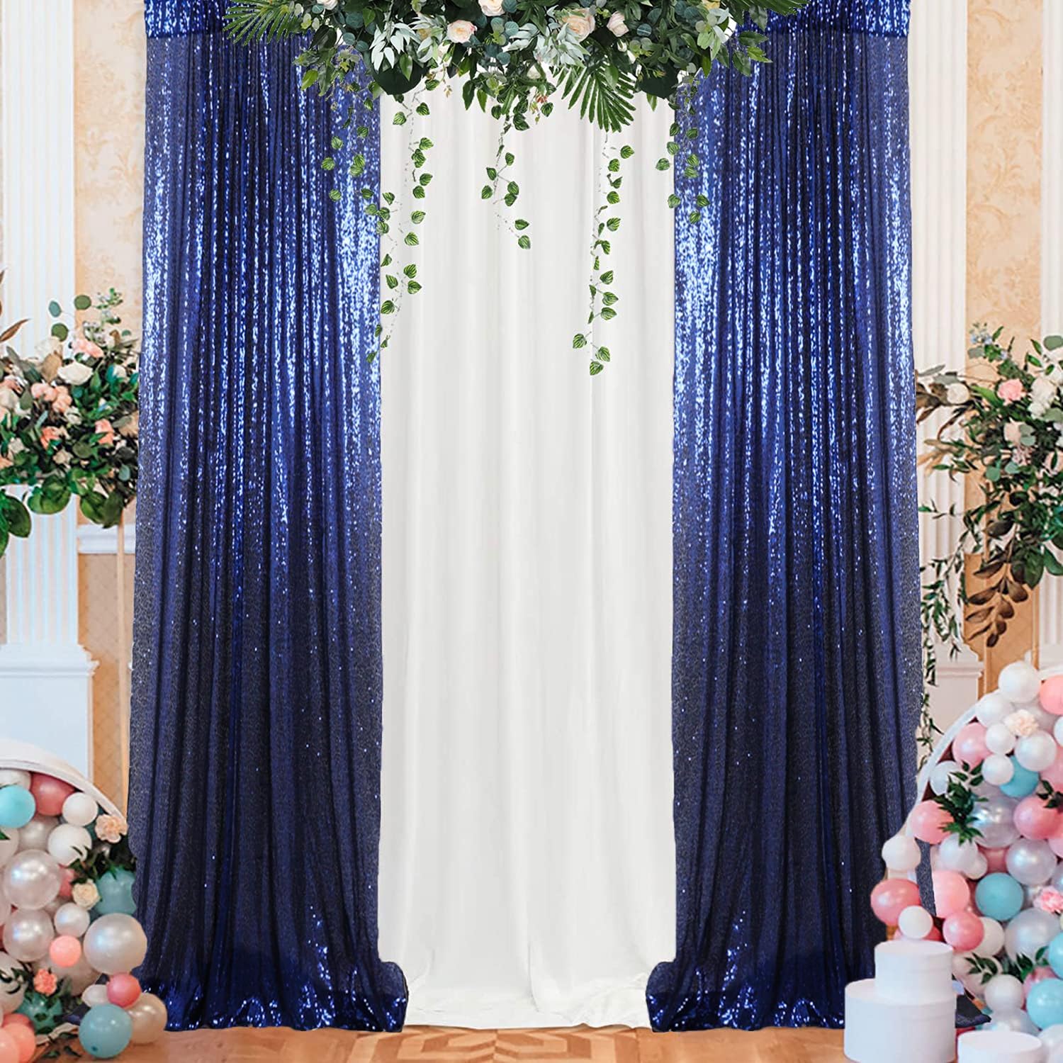 - Premium Quality & Seamless Design: 2 pieces of 4FT x 10FT navy blue sequin backdrop curtains designed with high-density sequins and finished edges for a flawless seamless look