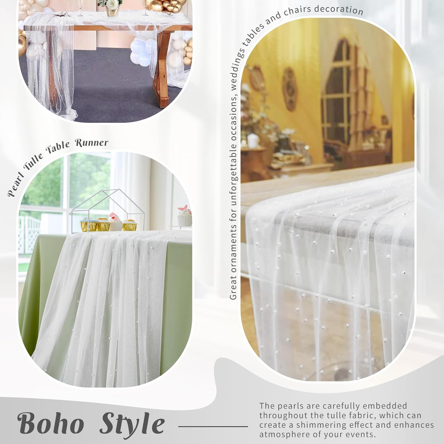 - 【Package Include】 You will receive 6 pieces of 29 x 120 inches pearl tulle table runners, the quantity is sufficient for your daily use and replacement needs, it's long enough to fit different size tables and chairs, These tulle table runner with pearls are skin-friendly. There are lots of different colors for you to choose. Perfect to decorate your tables.