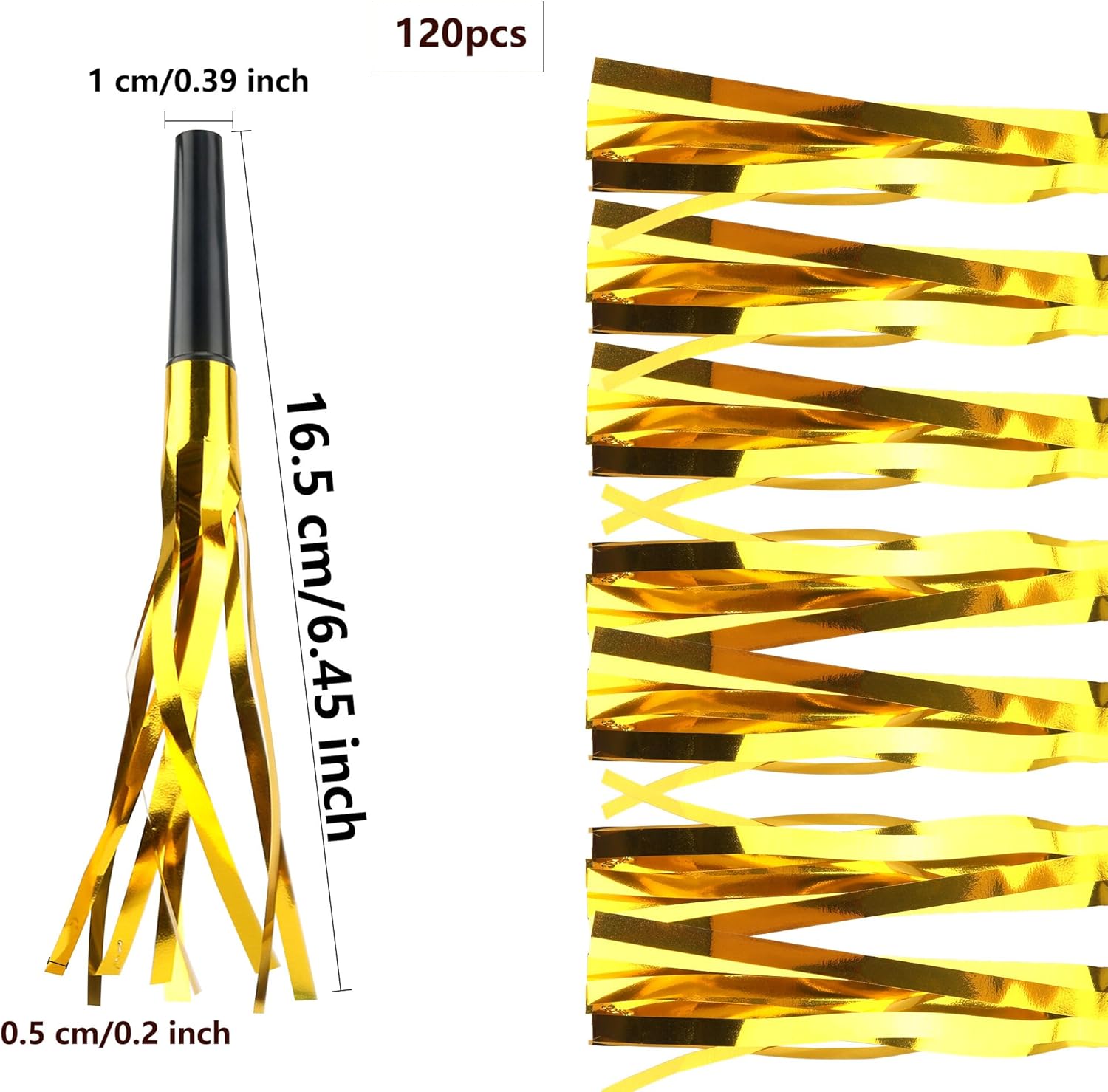 120 Pcs Glitter Bomb Noise Maker Gold Metallic Fringed Squawker Blowouts Silver Musical Blower Whistle for Birthday New Years Party Supplies Sporting Events Graduation (Gold)