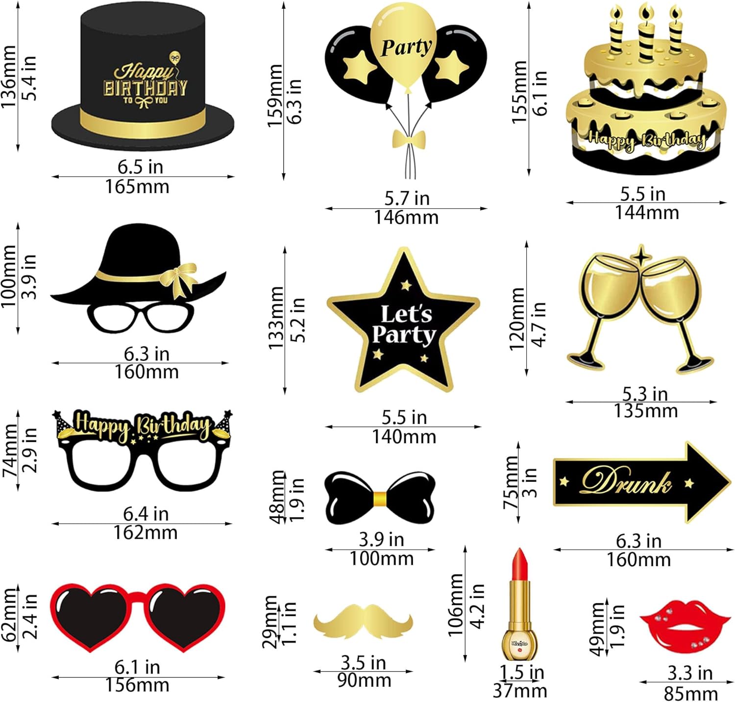 - Package Content:Our large set of 34 props includes plenty of options for everyone to choose from we made sure they all coordinated and included a good mix of sayings, cute hats and glasses and fun signs/props unique to a birthday party,There are so many options that everyone will find plenty they want to use.