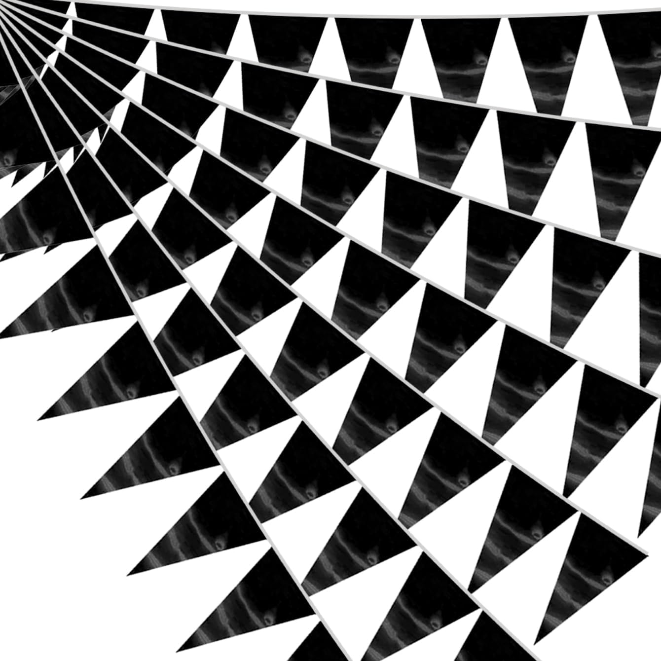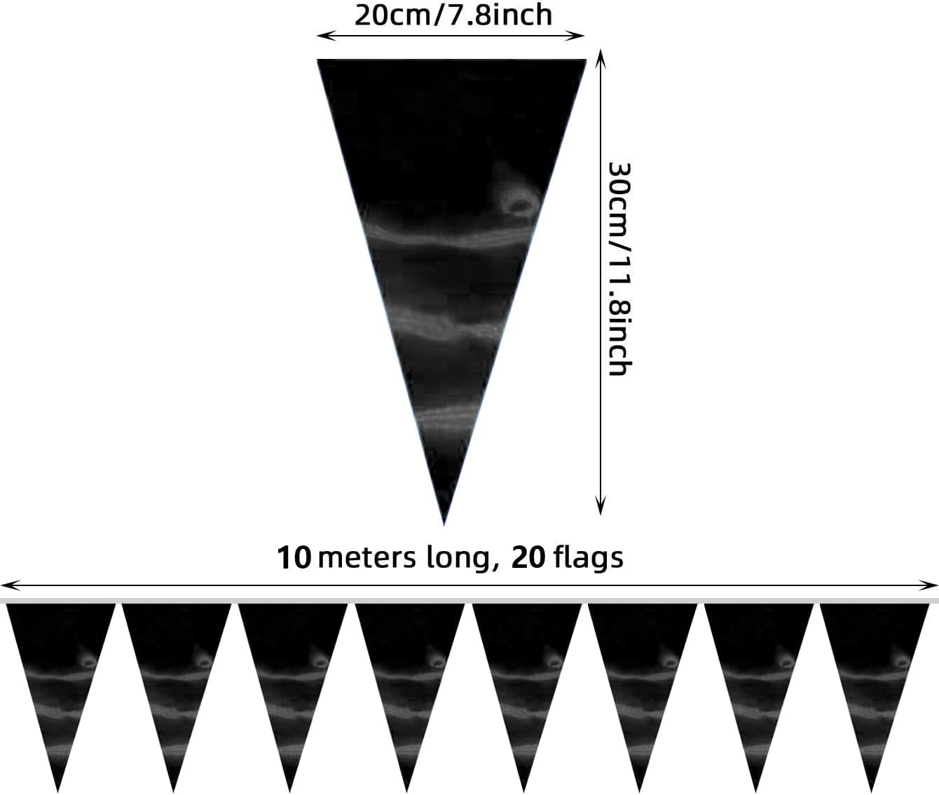 - 【Black Pennant Bunting Set】: The total length of the Black Triangle banner is 65.6 feet, divided into 2 strips, each 32.8 feet long. 40Flag, Each Pennant Banner 40Flag Size: 7.87''/20cm width x 11.8''/30cm height for birthday decorations many occasions, and so on