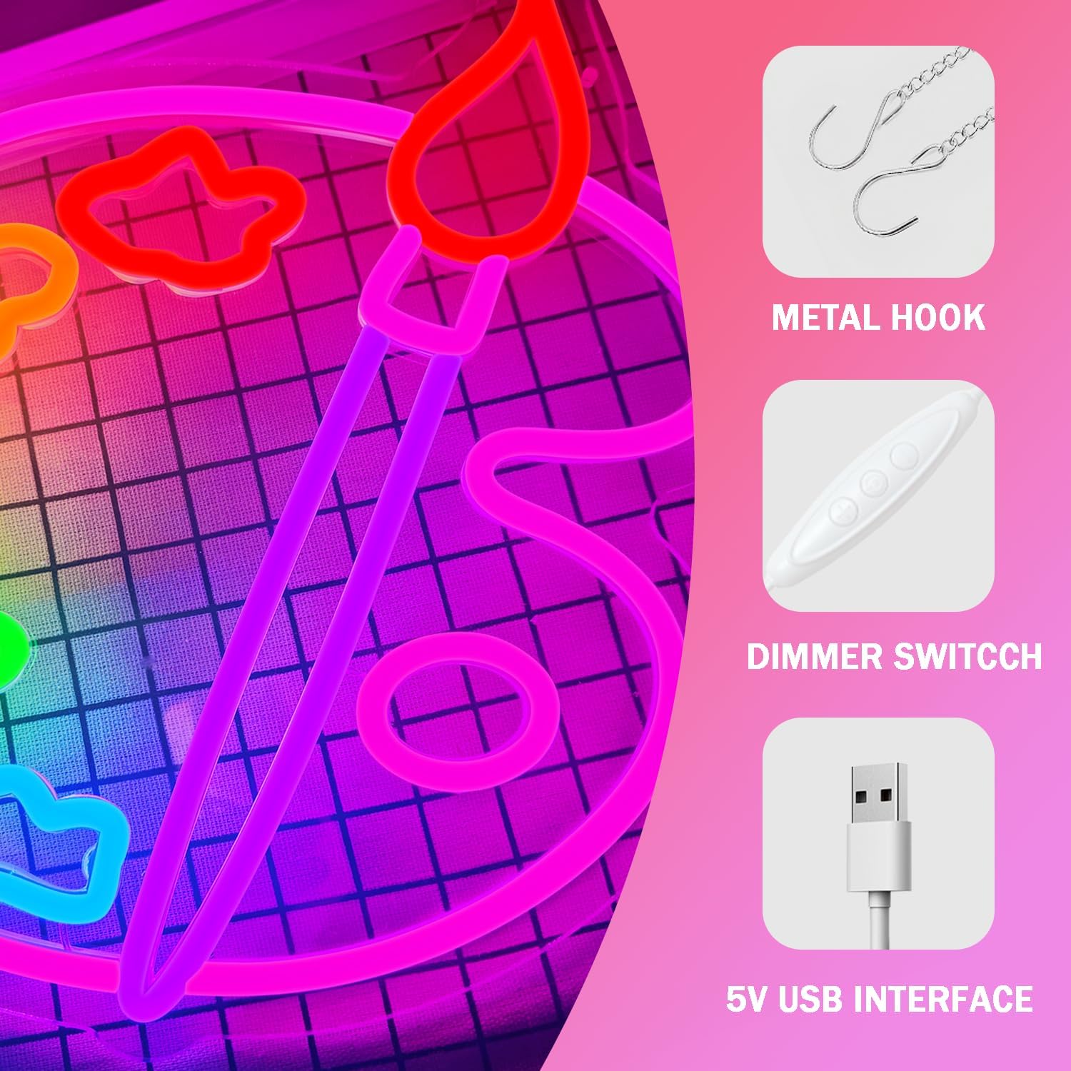 - 【Ideal Gift Choice】This palette neon sign is the perfect gift for artists, creative people, students or art lovers. Whether it's a birthday, holiday or special occasion, this unique gift will show your thoughtfulness and care, adding a touch of art to their lives.