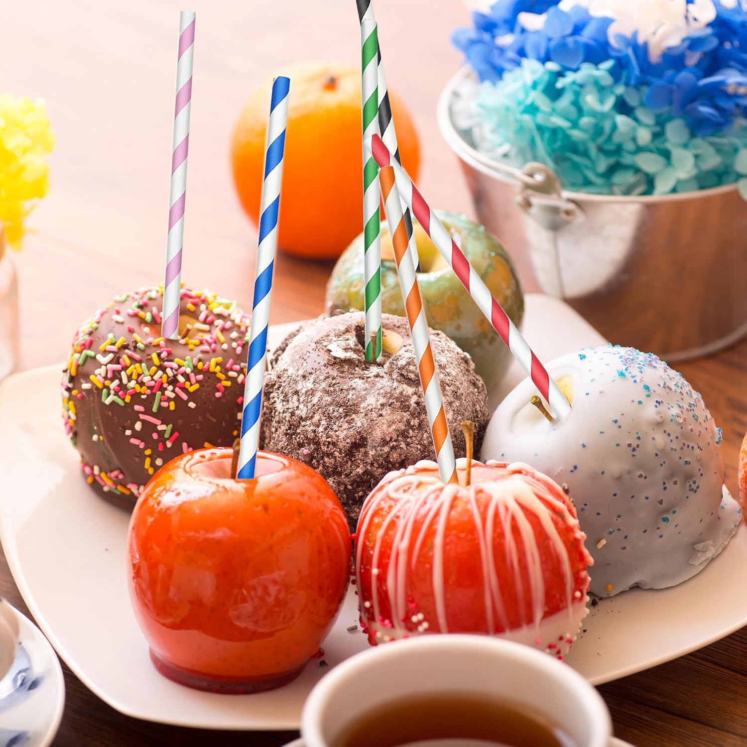 200 Striped Paper Straws, Biodegradable Disposable Drinking Colorful Straws for Birthdays, Coffee, Cocktail, Lemonade, Weddings, Bridal, Baby Shower, DIY Decorations, Party Supplies