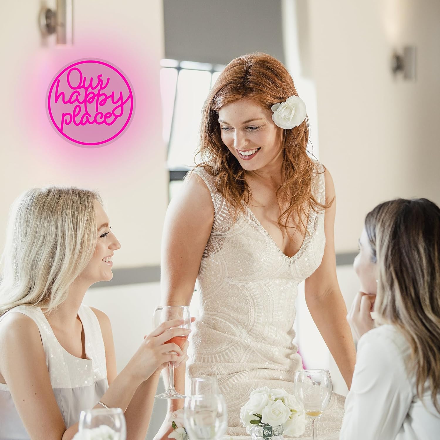 "Our happy place" Neon Sign Happy Place Neon Light for Wall Decor Letter Neon Signs Pink LED Neon Sign Round LED Neon Light for Bedroom Bar Party Birthday Club Decor