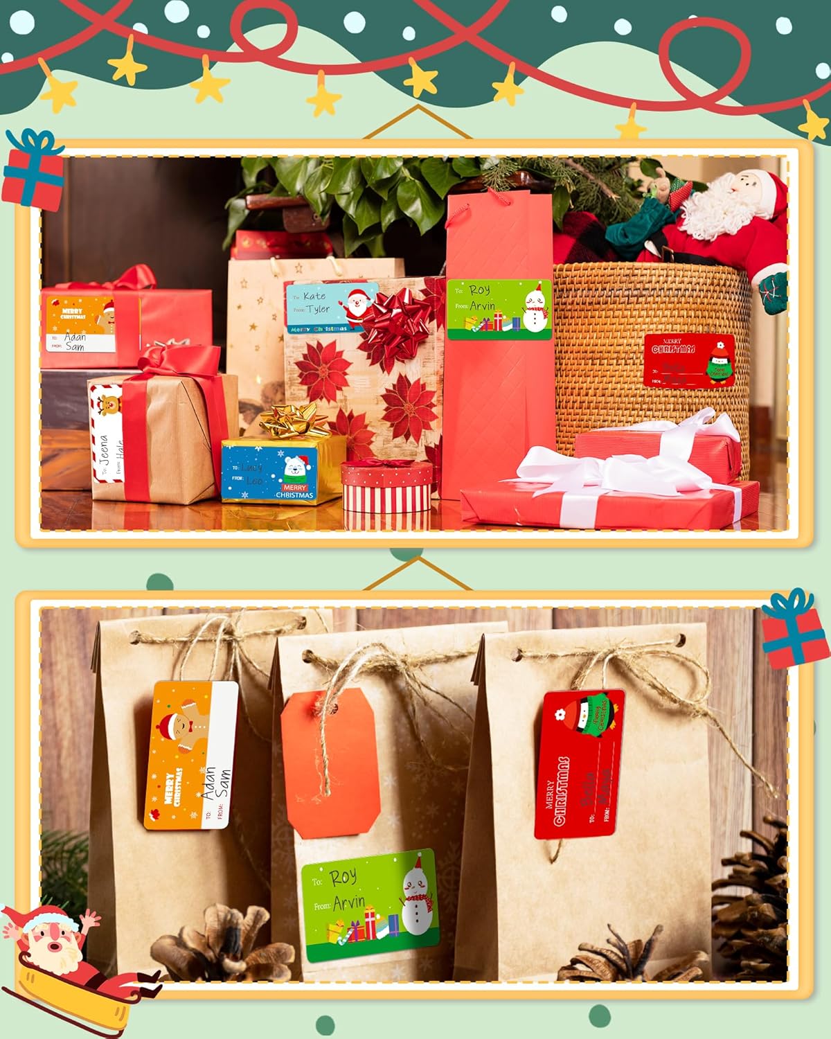 - PREMIUM QUALITY: Our Christmas labels stickers are made of high-quality material paper, brand new high-definition printing, clear patterns, smooth writing, and not easy to erase. These self-adhesive labels can be easily pasted on Christmas wrapping paper and gift bags in less time.