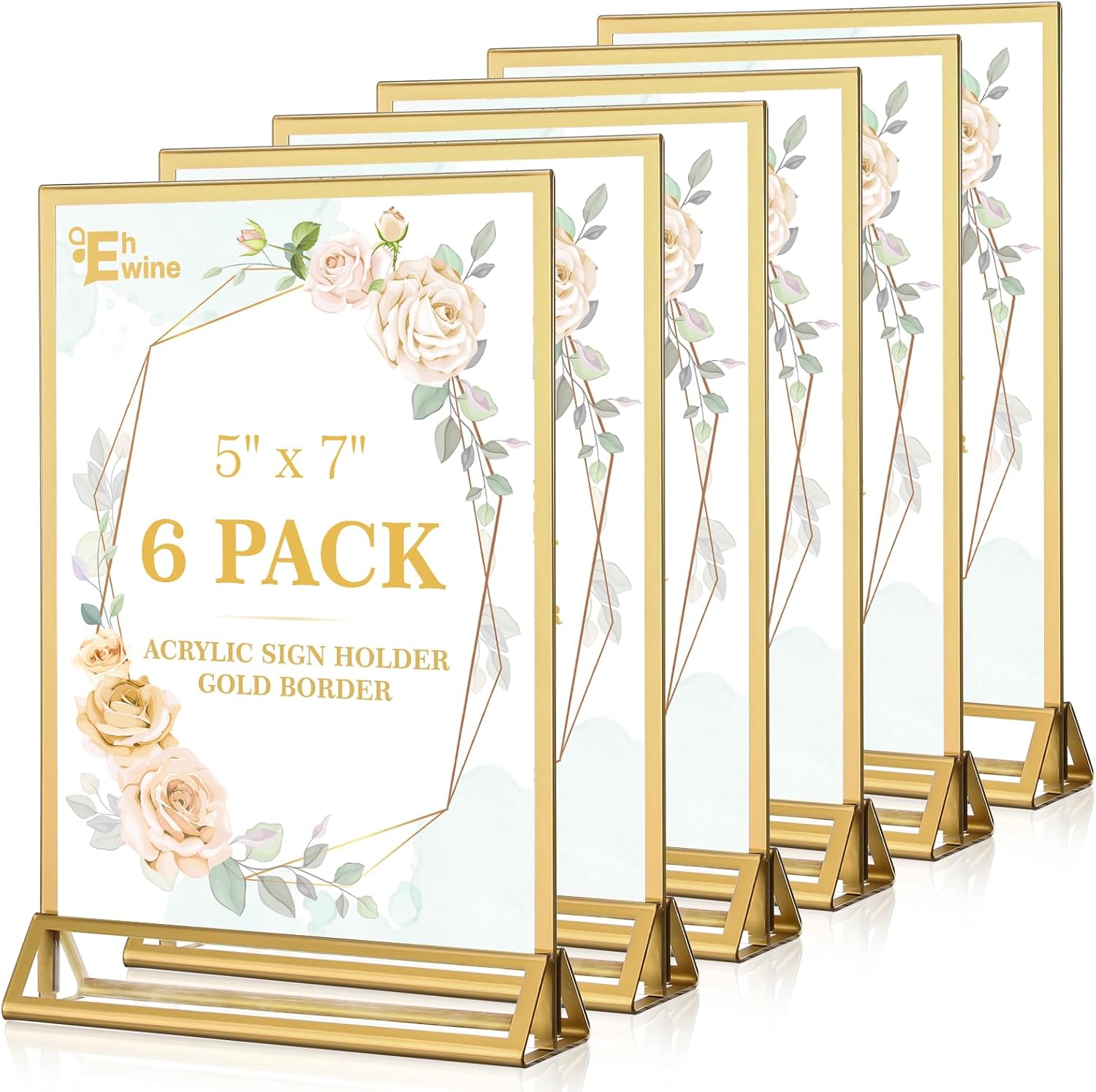 - Clear Golden Border Picture Frame: EHWINE acrylic sign holders are incredibly clear and transparent, providing a professional look to your displays. With no distortion or cloudiness, your message will be conveyed with crystal-clear clarity