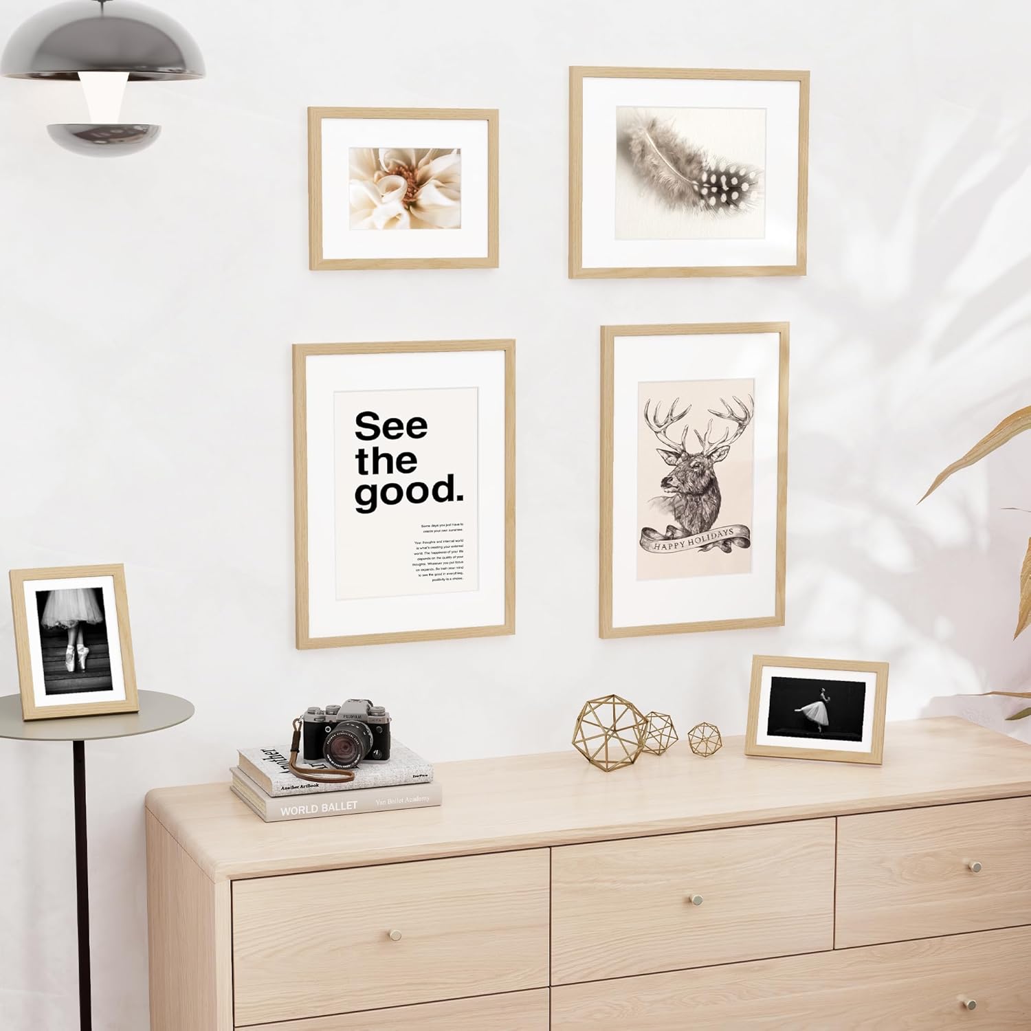8x10 inch Picture Frame, 8x10 Photo Frames with 5x7 Removable Mat - High Definition Plexiglass - Vertical and Horizontal Display - Wall Hanging Frame - Oak Color, 12 Pack