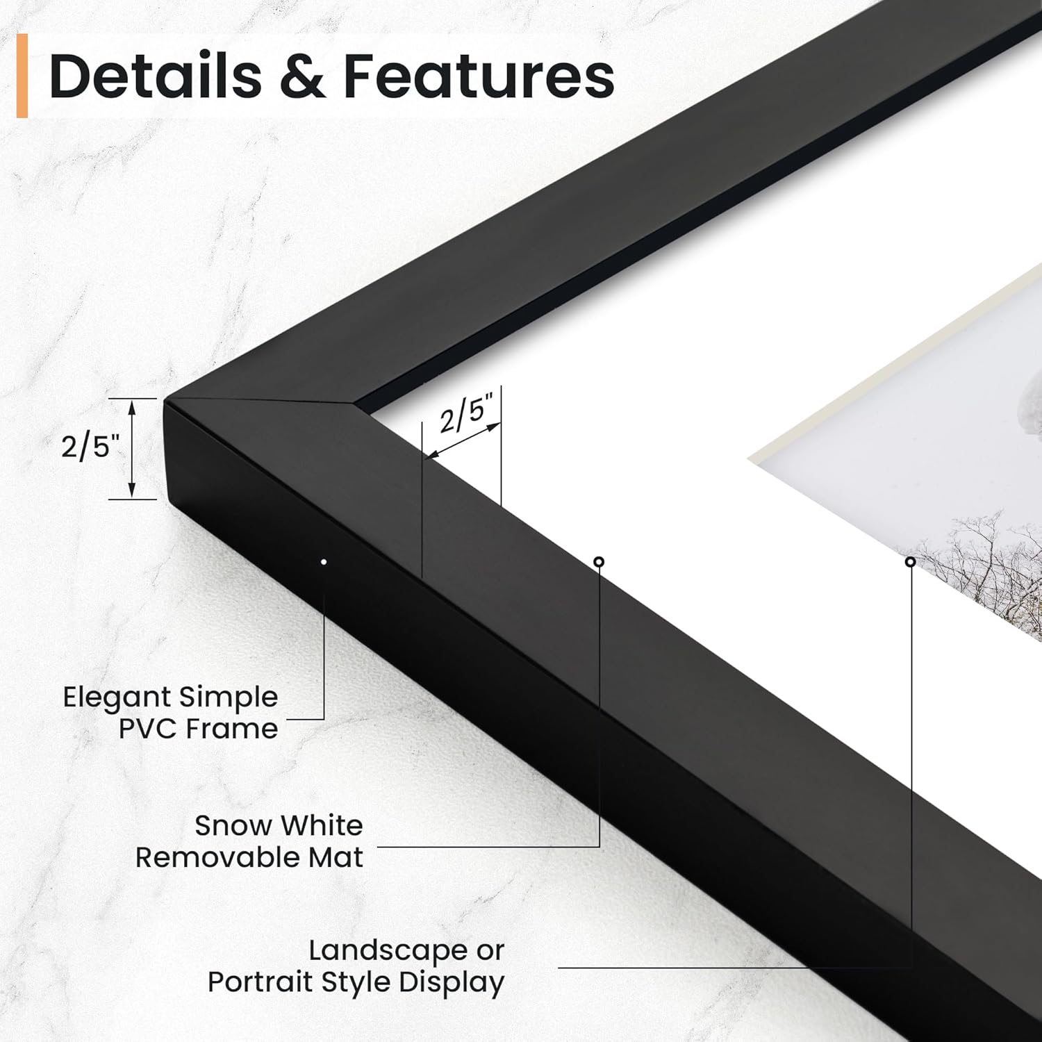 - Vertical & Horizontal Display - Our wall photo frames are versatile and easy to clip and hang. You can mount this plastic picture frame horizontally or vertically, with hanging hardware included. This picture frame maximizes your available space.