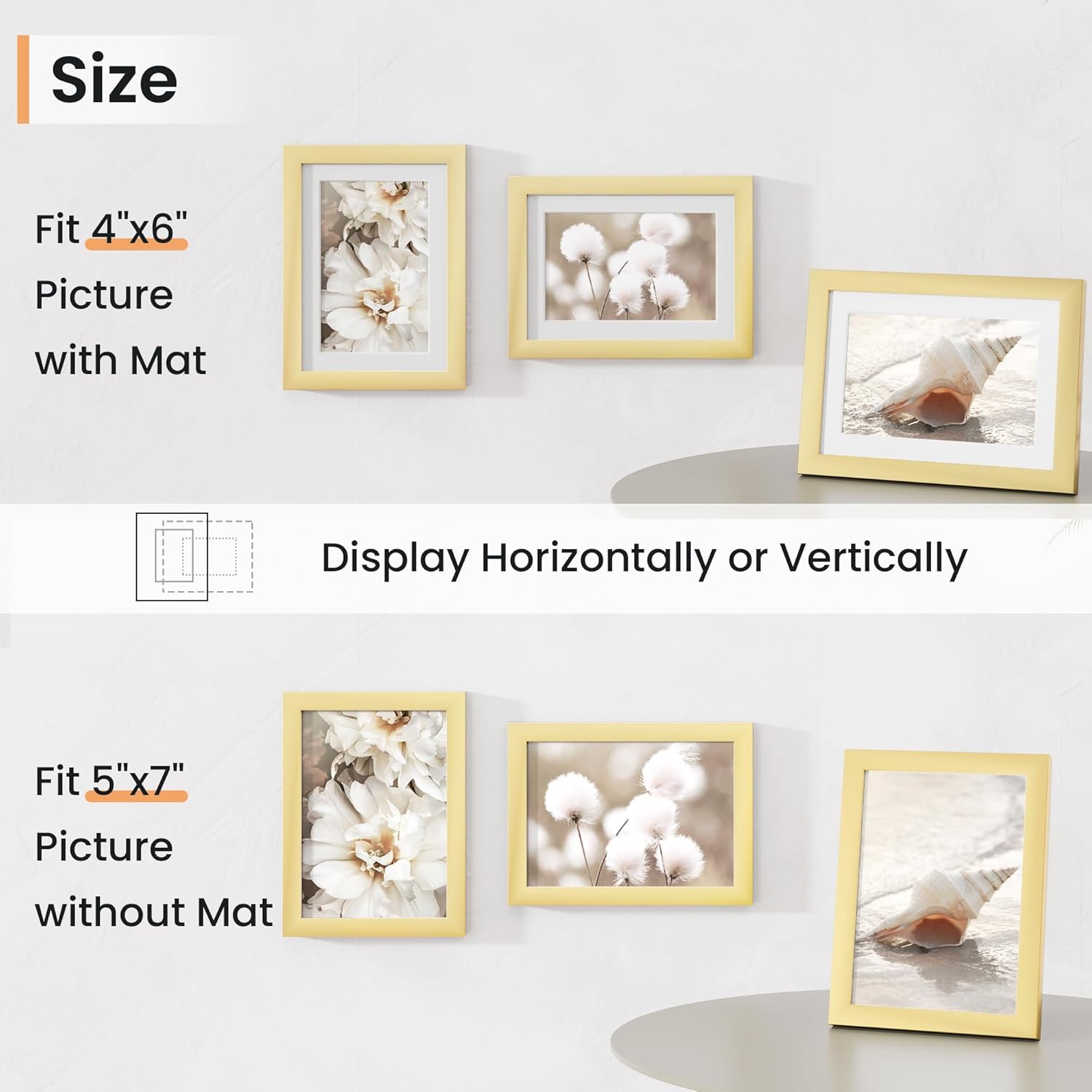 5x7 inch Picture Frame, 5x7 Photo Frames with 4x6 Removable Mat - High Definition Plexiglass - Vertical and Horizontal Display - Wall Hanging Frame - Gold, 12 Pack