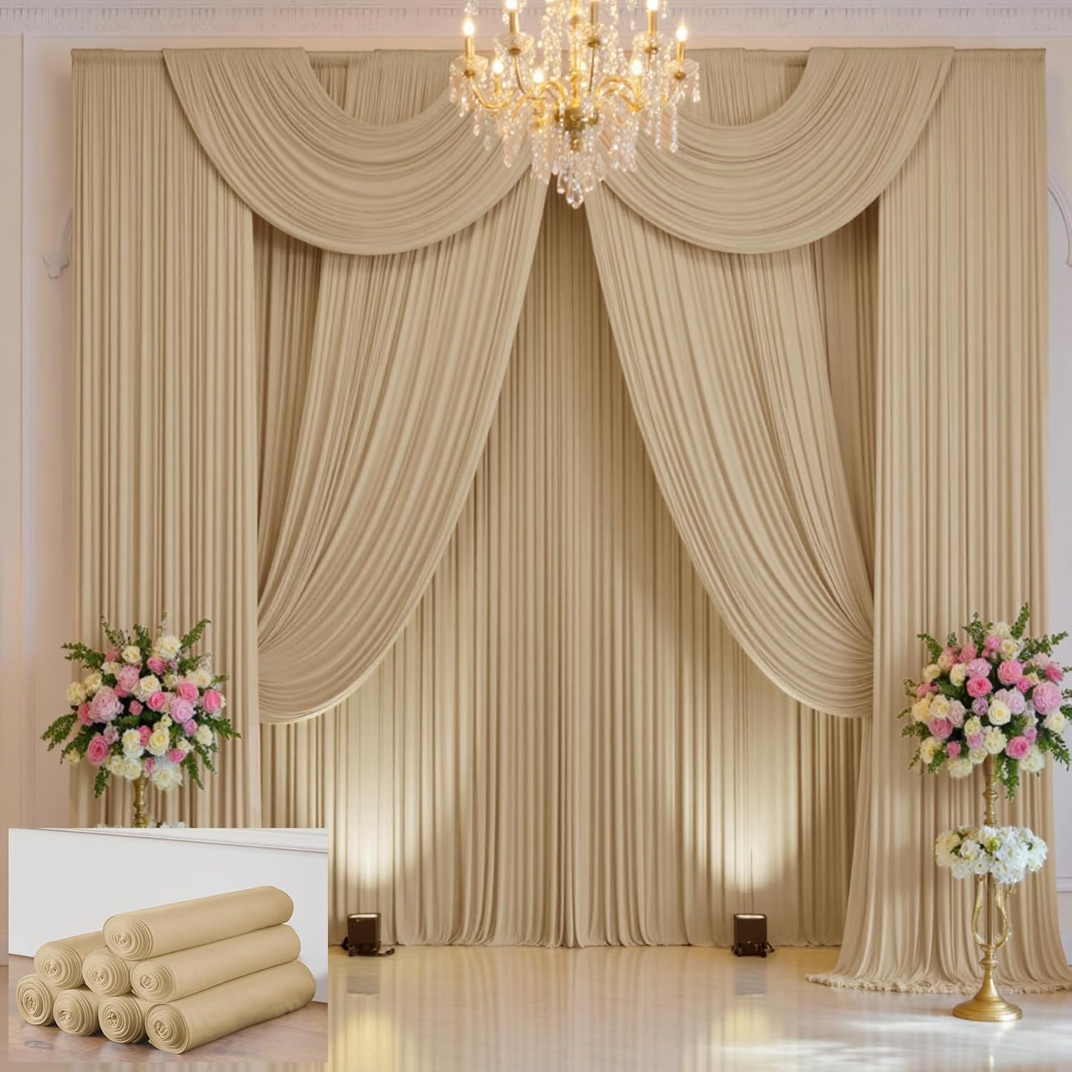 - 【Versatile Beautiful Beige Drapes】- The beige drapes backdrop 12ft are touch well, beautiful, easy to match with various themes and decorations for your birthday parties, party, wedding, wedding reception, bridal shower, baby shower, anniversary, graduation, event curtains, stage curtains, christening, photo, photo shoot, photo booth or photography backgrounds.
