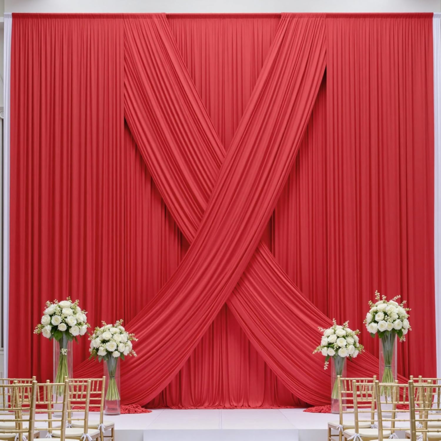 - 【Versatile Beautiful Red Drapes】- The red backdrop 12ft are touch well, beautiful, easy to match with various themes and decorations for your birthday parties, party, wedding, wedding reception, bridal shower, baby shower, anniversary, graduation, christening, photo, photo shoot, photo booth or photography backgrounds white curtains.