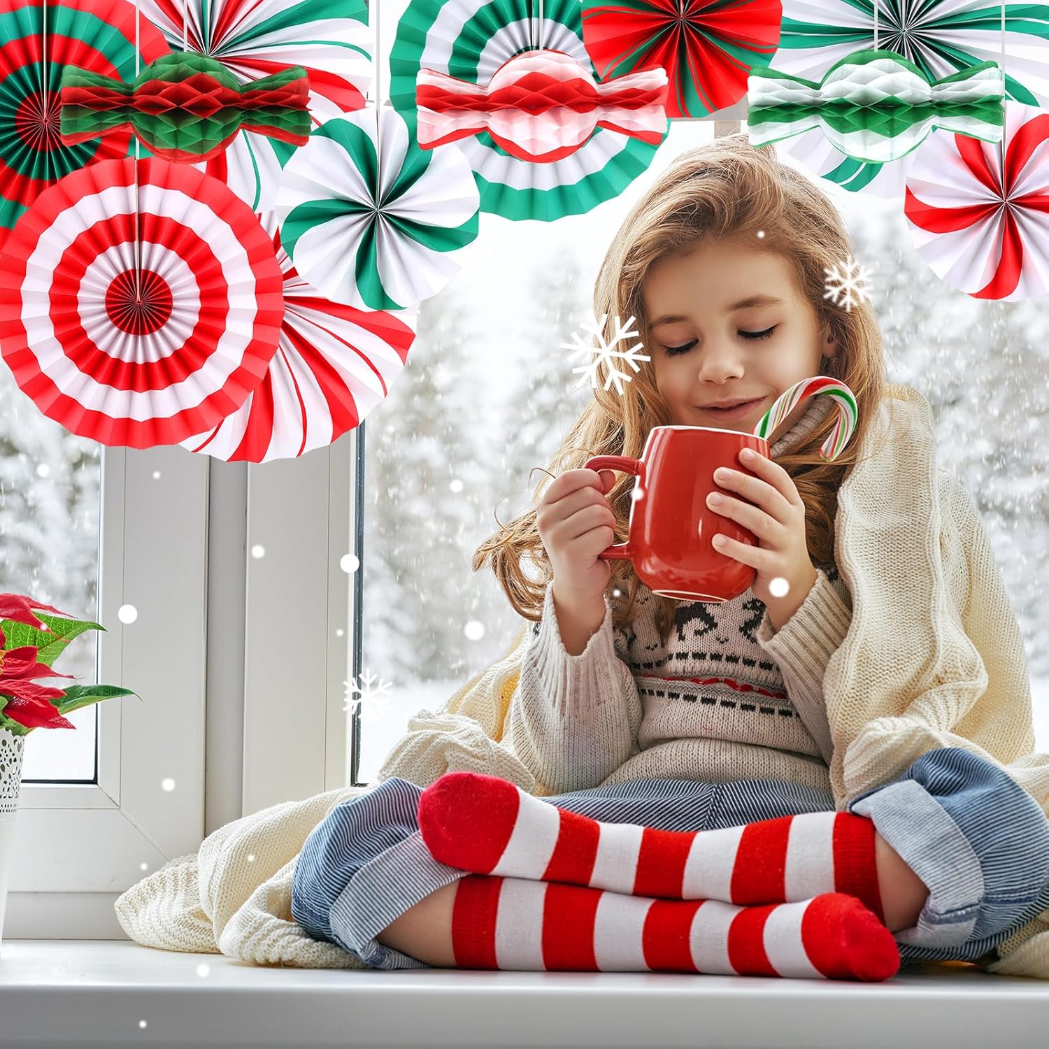 - Perfect for Christmas Parties: 9 paper fans and 3 honeycombs make this set an ideal choice for decorating your home, office, or any Christmas party.