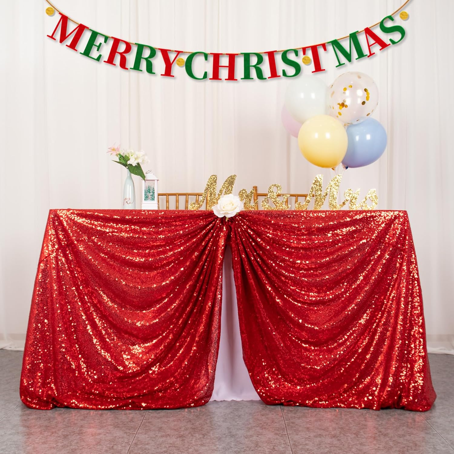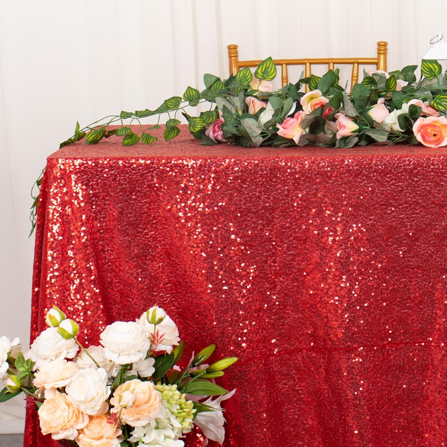 - NO DROPPING SEQUINS : This sparkle table cover overlay with serged edges avoid falling sequins, beautiful colors of sequin tablecloth ensure your wedding party birthday christmas prom decoration dessert cake tables more elegant and sparkly