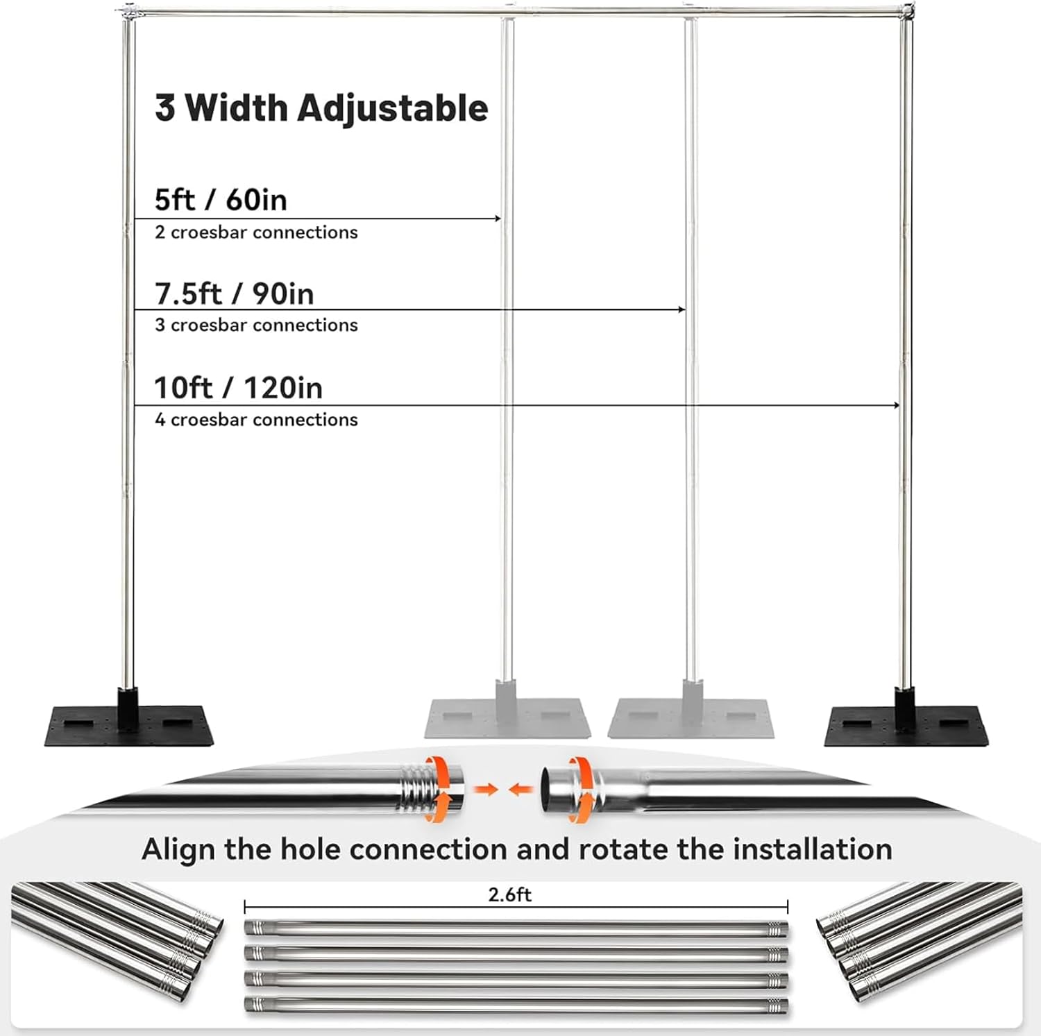 - Wide Applications: The backdrop stands are great for hanging curtains, balloons, string lights, flowers, and more. Perfect for weddings, holiday parties, photography backdrops, photo booths, banner stand bsackgrounds and so on.