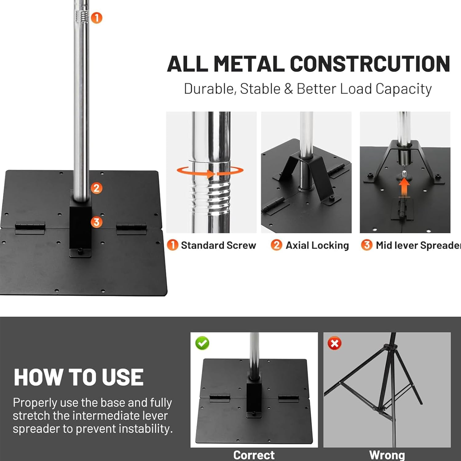 - Sturdy & Stable: Our back drop adjustable stand is made with thickened stainless steel tubes and a robust iron base, built to last and designed for enhanced stability. Besides, this back drop stand won't wobble or bend under heavy loads.