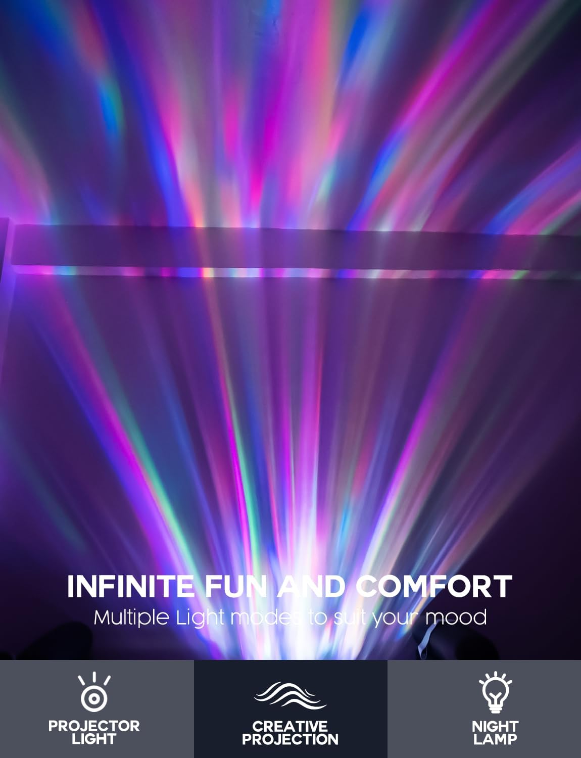 - Aurora Borealis Light Projector: This innovative 2-in-1 lamp functions as a projector light, creating a mesmerizing display of colorful ocean waves that dance across your walls and ceiling. If you prefer a more traditional lighting option, it easily switches to a cozy night lamp mode. This feature provides a warm, soothing glow, making it perfect for reading before bed or as a gentle companion while you drift off to sleep.