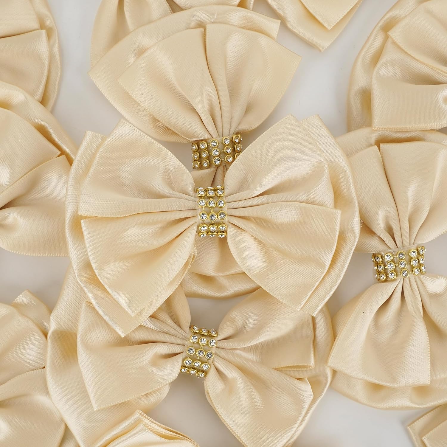 Champagne Gold Ribbon Bow 4'' Premade Satin Bows, Gift Bows with Rhinestone, Wrapping Bow for Presents, Greeting Cards, Treat Bags, Wine Bottle, Valentines Bows for Gift Wrapping-12 Counts
