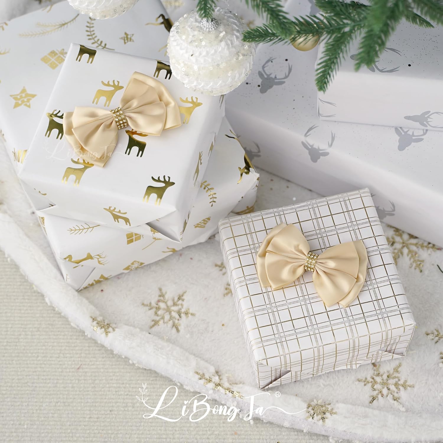 - Our satin ribbon gift bows are made of high-quality 100% polyester fiber. It has a very beautiful luster and comfortable touch. Durable and sturdy, not easily deformed or faded. These gift wrap bows have a smooth surface, adding an elegant touch to your gift.