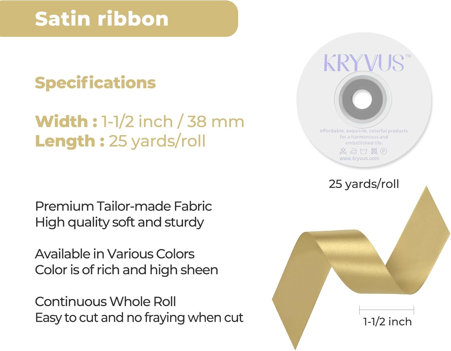 Light Gold Satin Ribbon 1-1/2 inch X Continuous 25 Yards, Single Face Polyester Ribbon Perfect for Gift Wrapping, Flower Bouquet, Wedding Decor, Crafts, Bow Making, Sewing and More