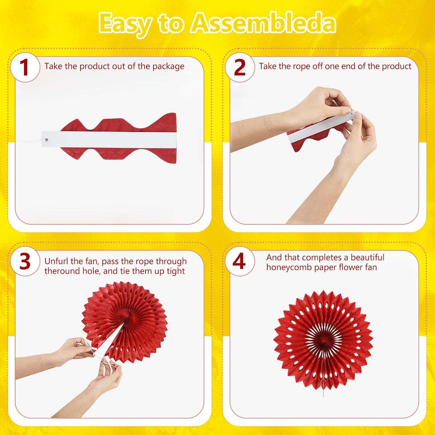 - 【Hanging paper fan set】Paper fan set includes 20 paper fans of different sizes, among which the paper flower fan size is 14 inches * 3, 12 inches * 5, 8 inches * 6, and 6 inches*6.
