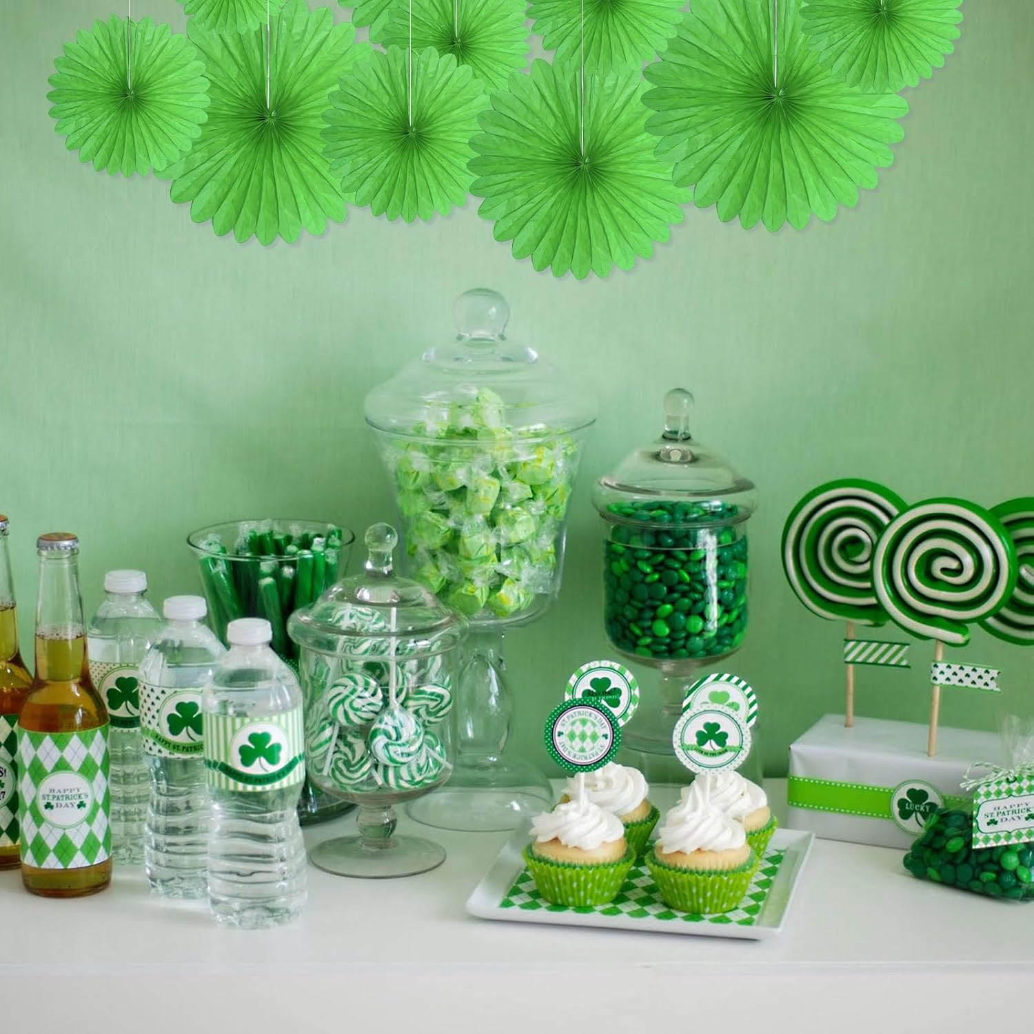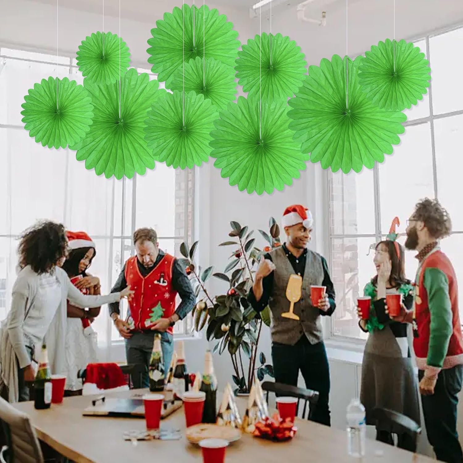 20 Pcs Grass Green Hanging Paper Fan, Hanging Honeycomb Round Paper Fans for Weddings, Birthdays, Christmas, Baby Showers, Classroom, Events Ceiling Party Supplies Decorations