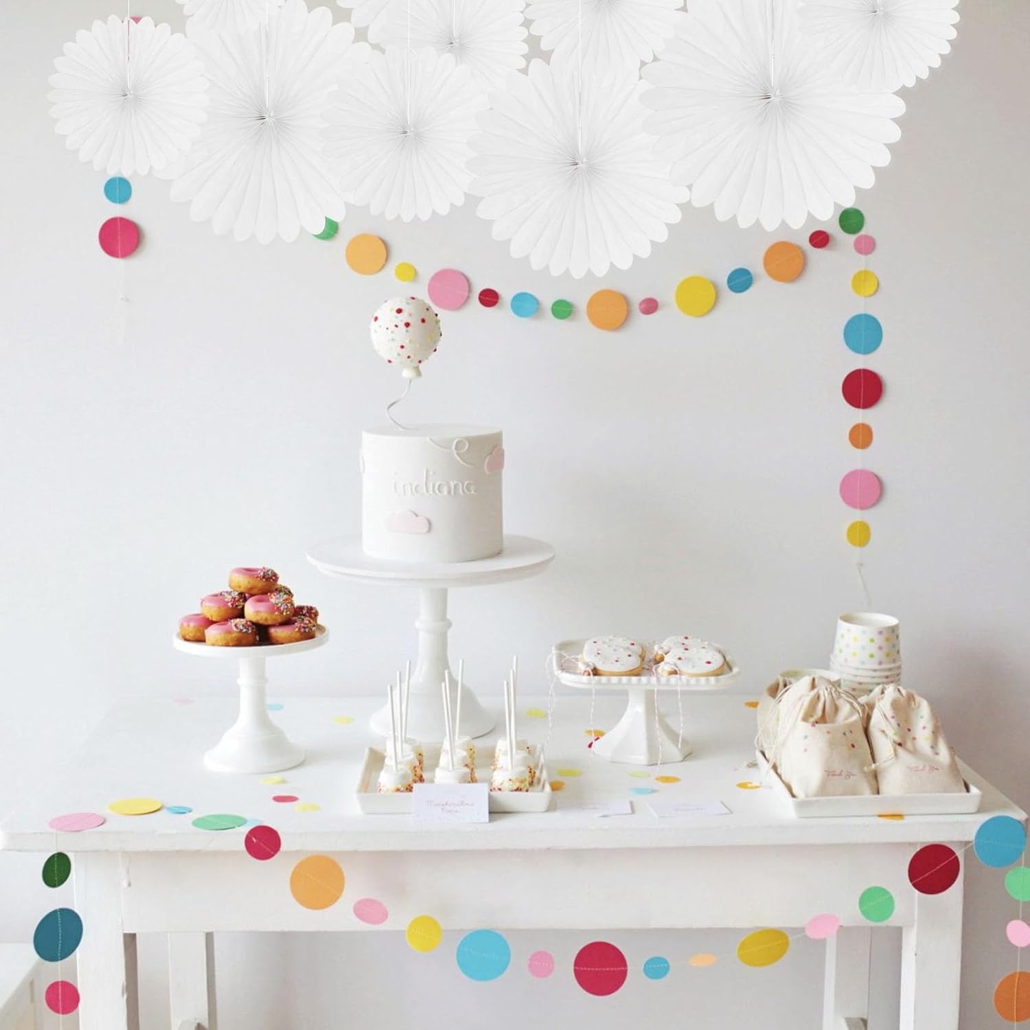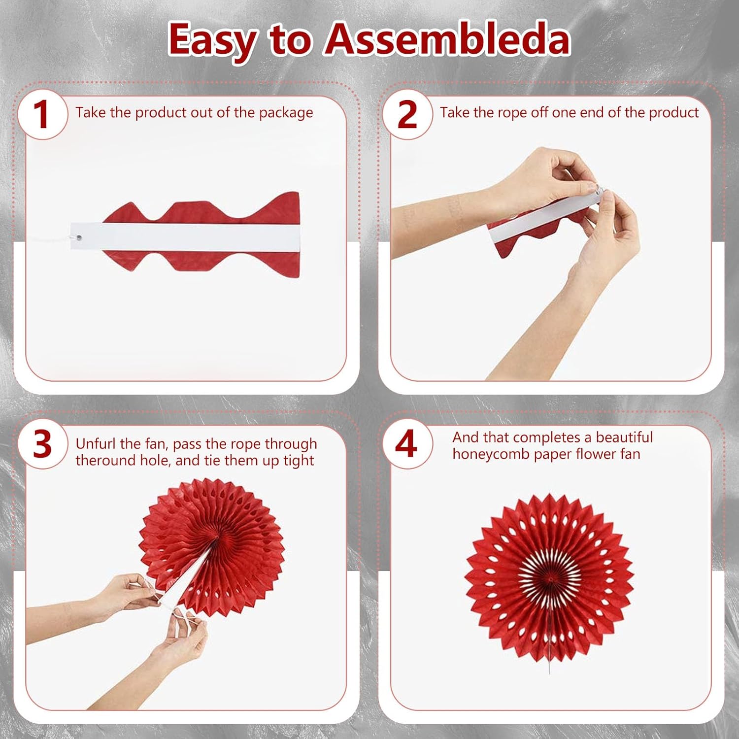 - 【Hanging paper fan set】Paper fan set includes 20 paper fans of different sizes, among which the paper flower fan size is 14 inches * 3, 12 inches * 5, 8 inches * 6, and 6 inches*6.