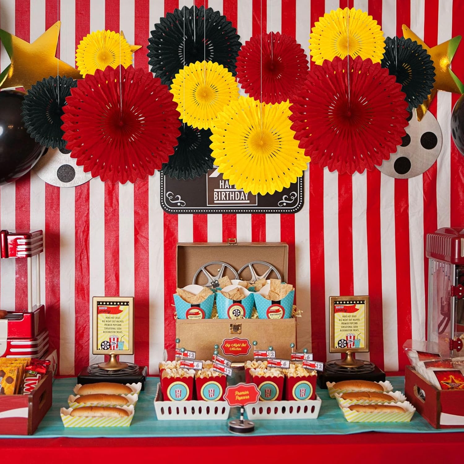 18 Pcs Red Yellow Black Hanging Paper Fan, Hanging Honeycomb Round Paper Fans for Weddings, Birthdays, Christmas, Baby Showers, Classroom, Events Ceiling Party Supplies Decorations