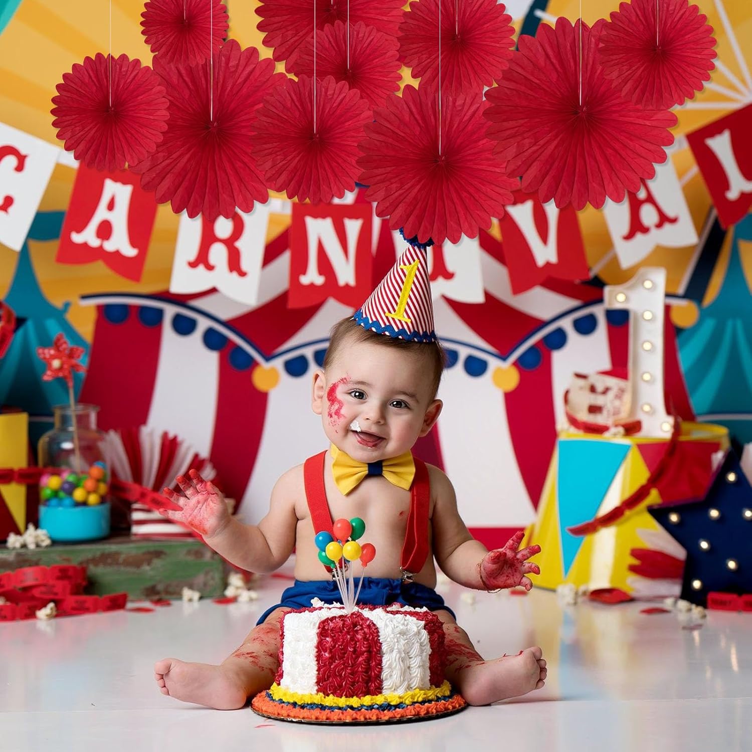 20 Pcs Red Hanging Paper Fan, Hanging Honeycomb Round Paper Fans for Weddings, Birthdays, Christmas, Baby Showers, Classroom, Events Ceiling Party Supplies Decorations
