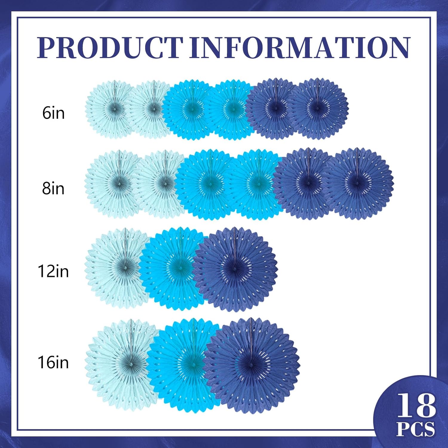 18 Pcs Blue Set Hanging Paper Fan, Hanging Honeycomb Round Paper Fans for Weddings, Birthdays, Baby Showers, Classroom, Events Ceiling Party Supplies Decorations