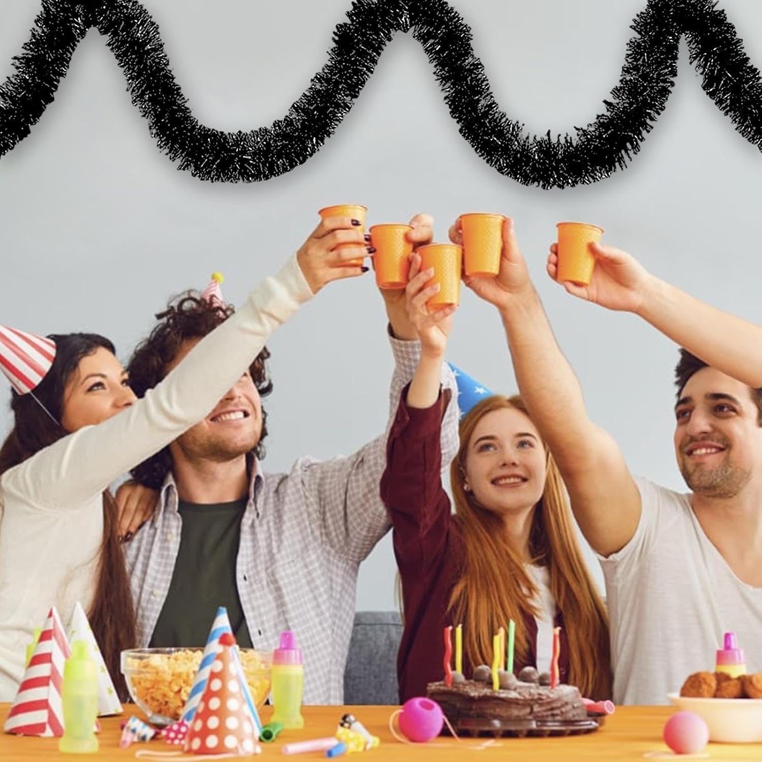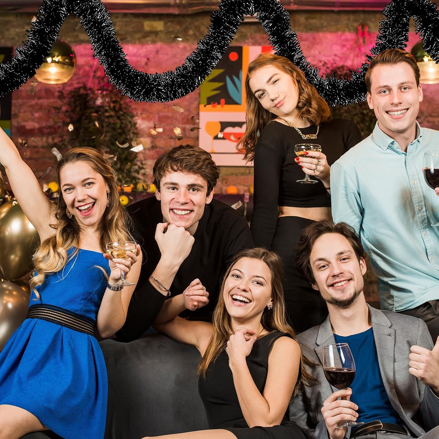 50 Feet Black Christmas Tinsel Garland, Metallic Foil Twist Banner Wall Hanging Tinsel Streamers Backdrop for Parade Floats, Christmas, Mother's Day, Birthday Party Decorations(2in x 50ft)