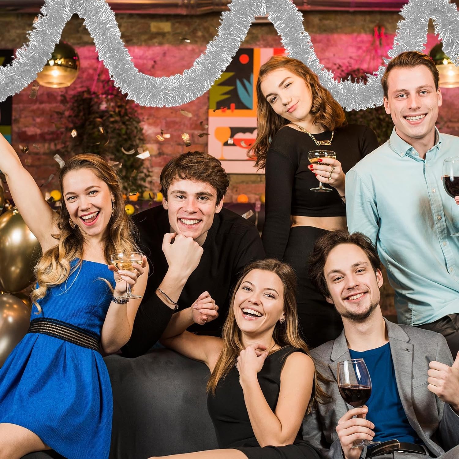 - Add Atmosphere: The metallic garland tinsel reflects light for extra sparkle, create an festive ambience and add more fun and energy to your special party events, you can use it as a background to take photos with your lover, kids, other family members, friends, relatives, classmates to celebrate important days