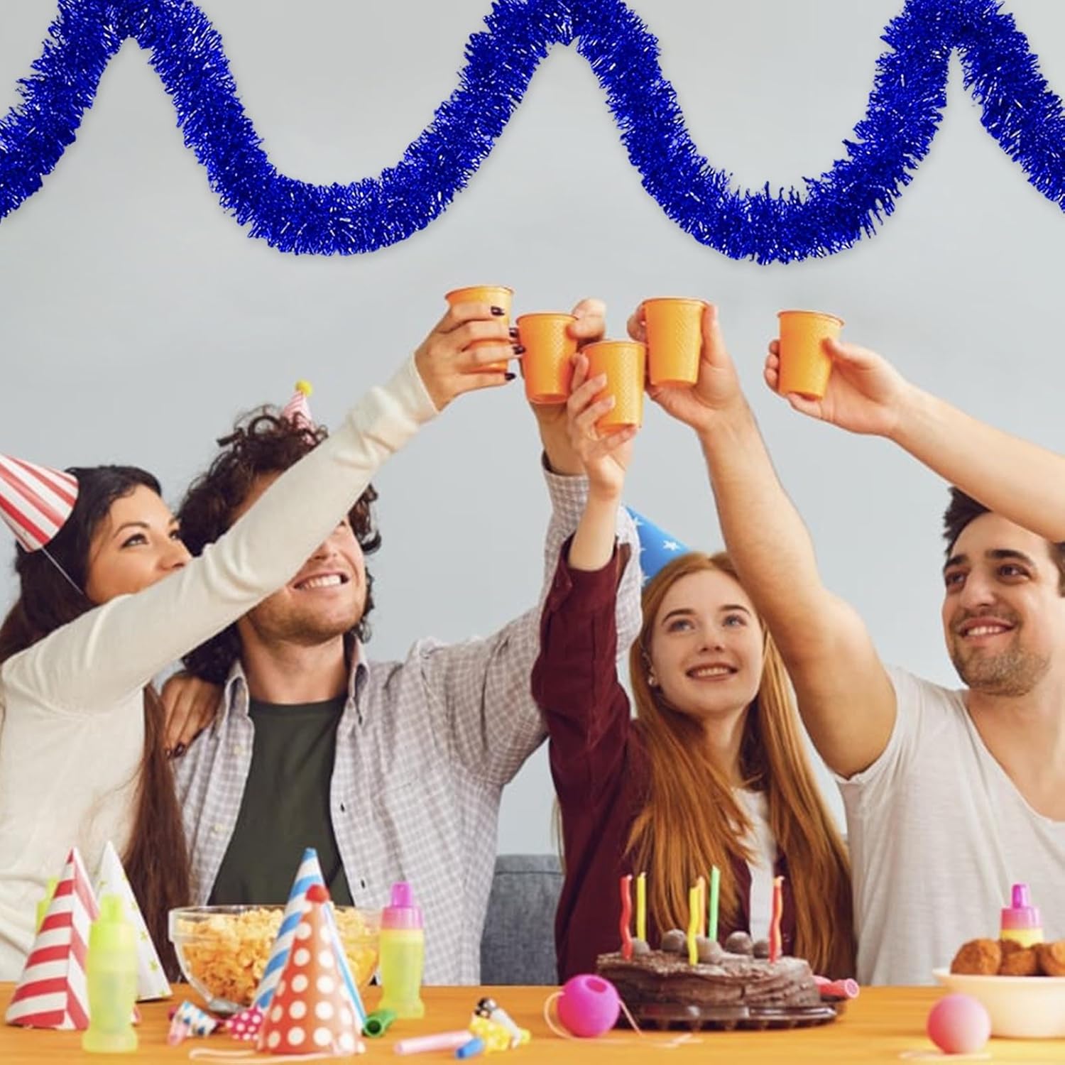 50 Feet Blue Christmas Tinsel Garland, Metallic Foil Twist Banner Wall Hanging Tinsel Streamers Backdrop for Parade Floats, Christmas, Mother's Day, Birthday Party Decorations(2in x 50ft)