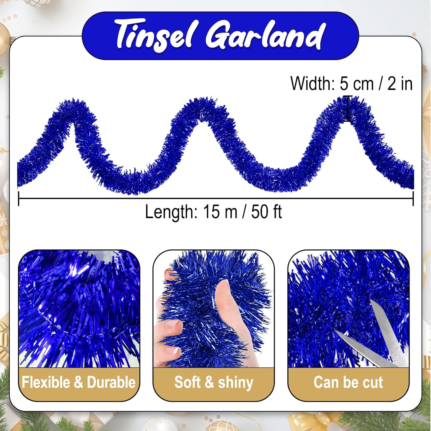 - Package and Size: Package comes with 1 piece Christmas tinsel garland, approx 15m/ 50 feet in length and 2 inches in width, which is long enough for your decoration needs. The abundant length is convenient for you to cut them in most length you want, to decorate your Christmas tree in your own style