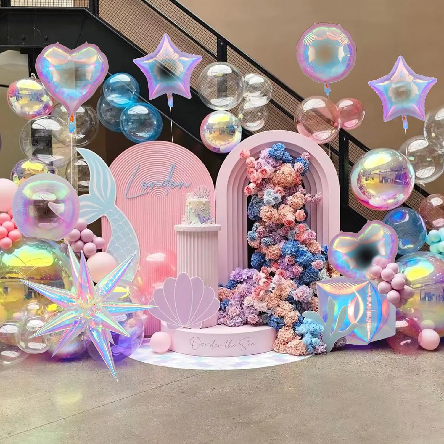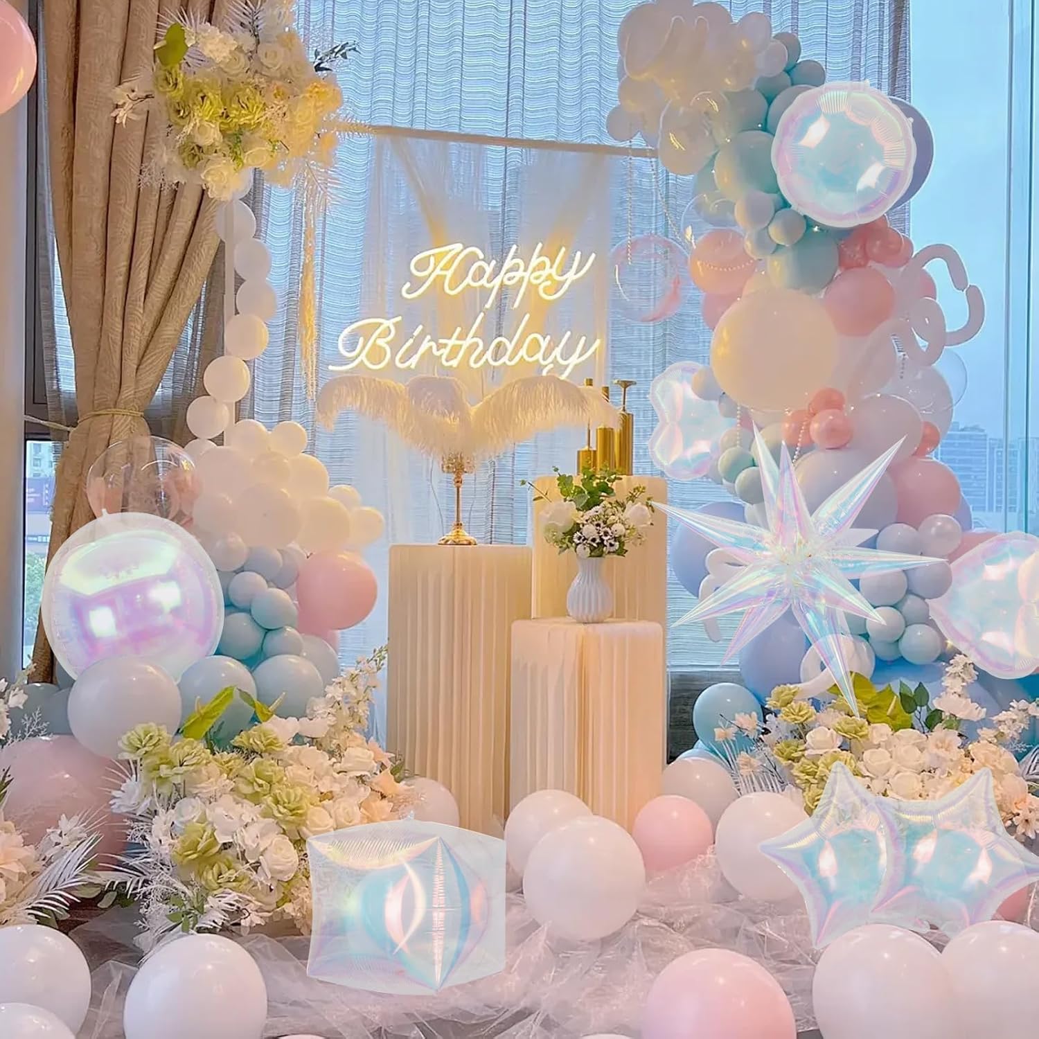 - Included Components : Iridescent Foil Balloons