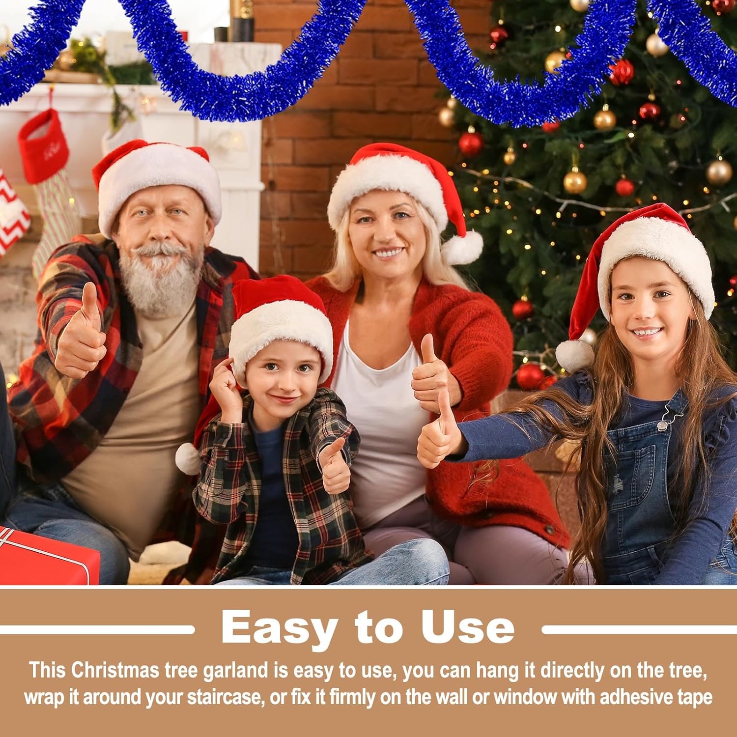 - Easy to Hang: Christmas tinsel garland include a soft, bendable wire inside, and easy to shape as different looks. You can also trim it into different sizes, twist them into various shapes as you like, or with the tape stick it on the wall, window, table, door, rail or any place you like, show the christmas glamour to make your party decoration for the home fun