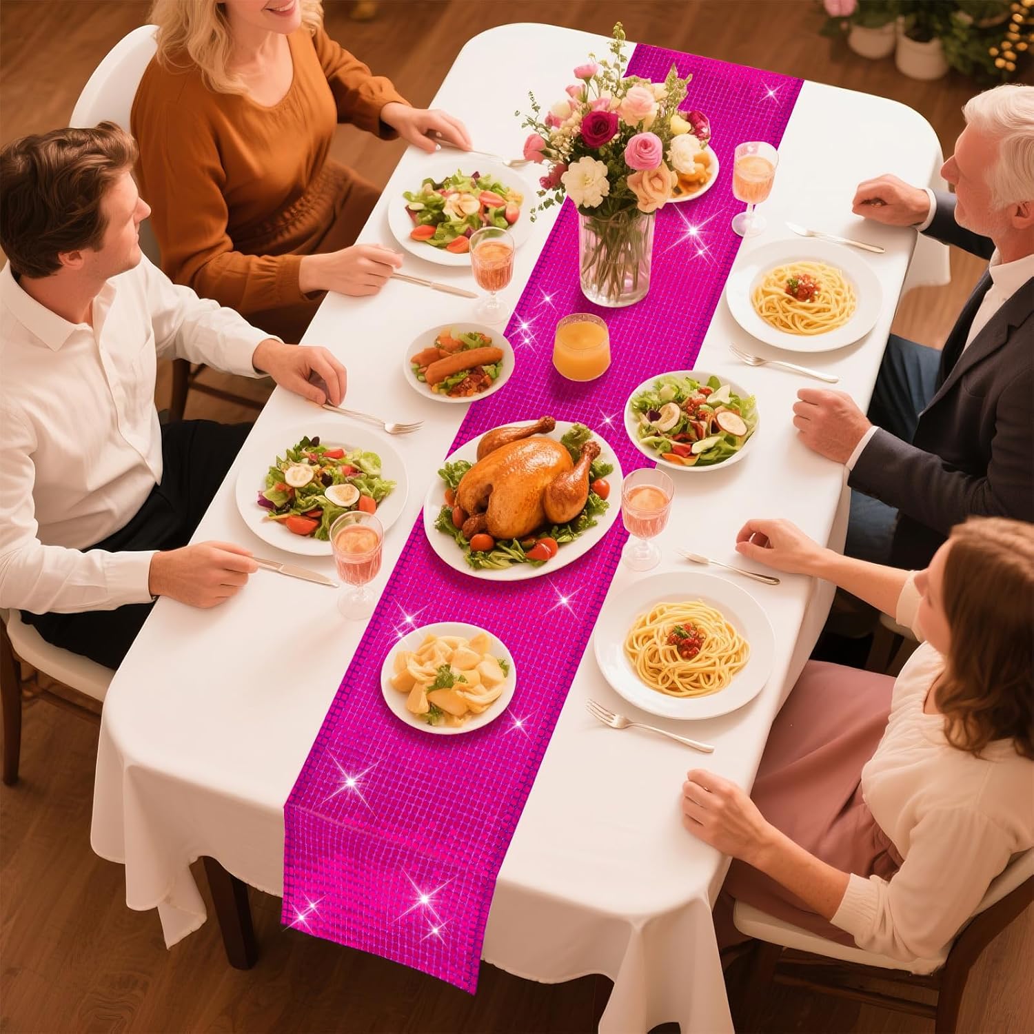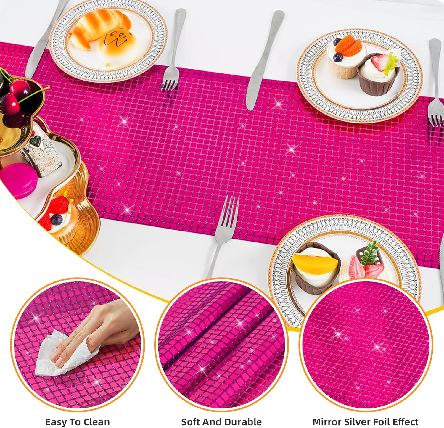 SquarePie Disco Table Runner Mirror Glitter Hot Pink Sequin Runner for 70s 80s Disco Dance Bachelorette Party Supplies Table Decorations (12x108 Inches ,2 Pack)