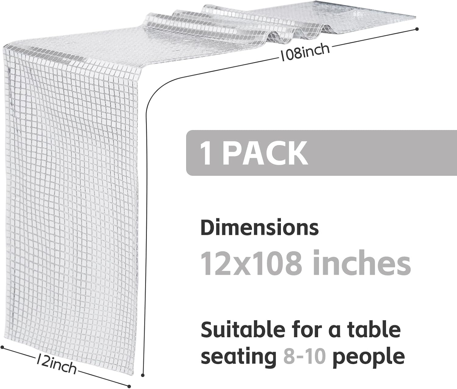 - SIZE: Disco Party Table runner measures approximately 12 x 108 inches. Includes 1 silver table runners adorned with glittery mirrored squares to add a touch of sparkle to your party!