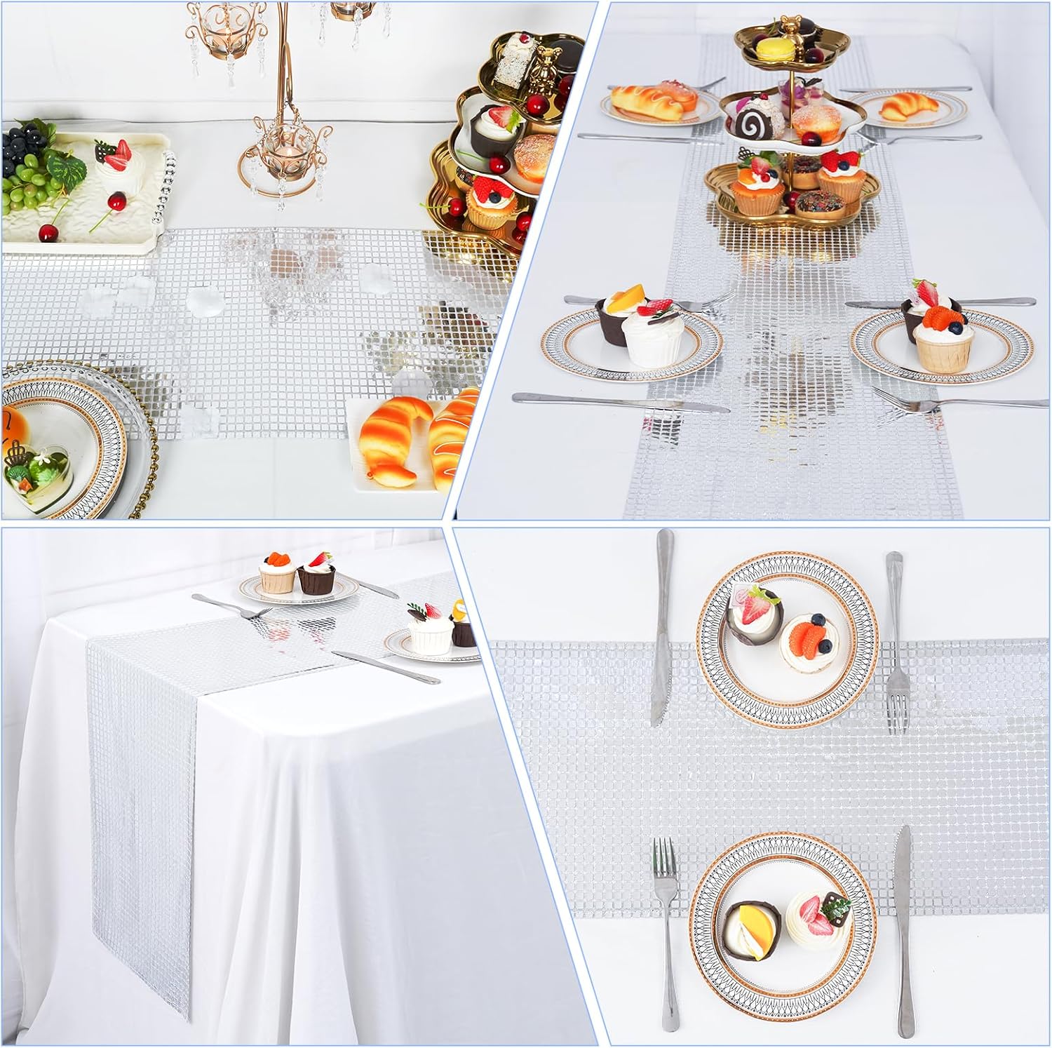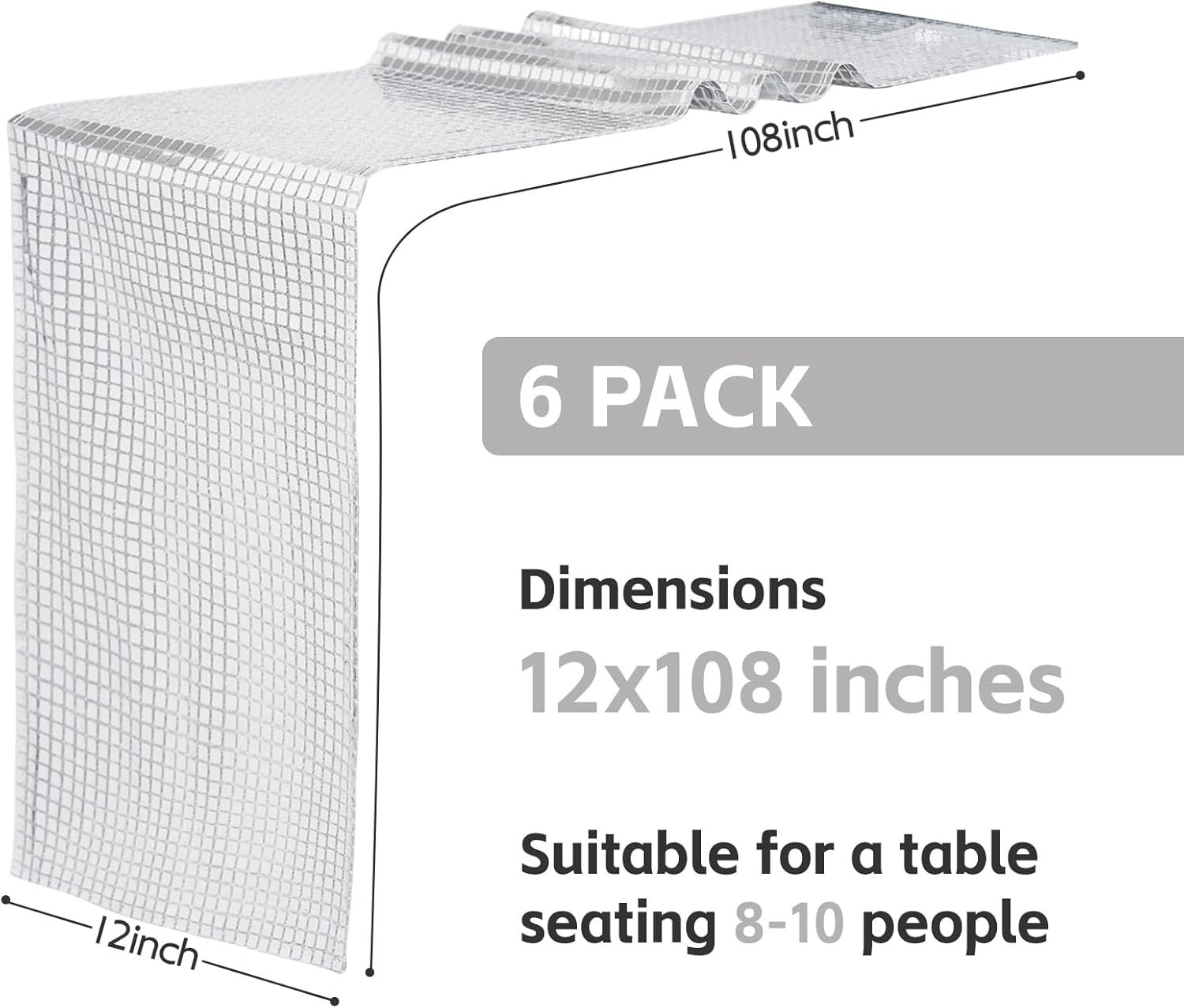 - SIZE: Disco Party Table runner measures approximately 12 x 108 inches. Includes 6 silver table runners adorned with glittery mirrored squares to add a touch of sparkle to your party!